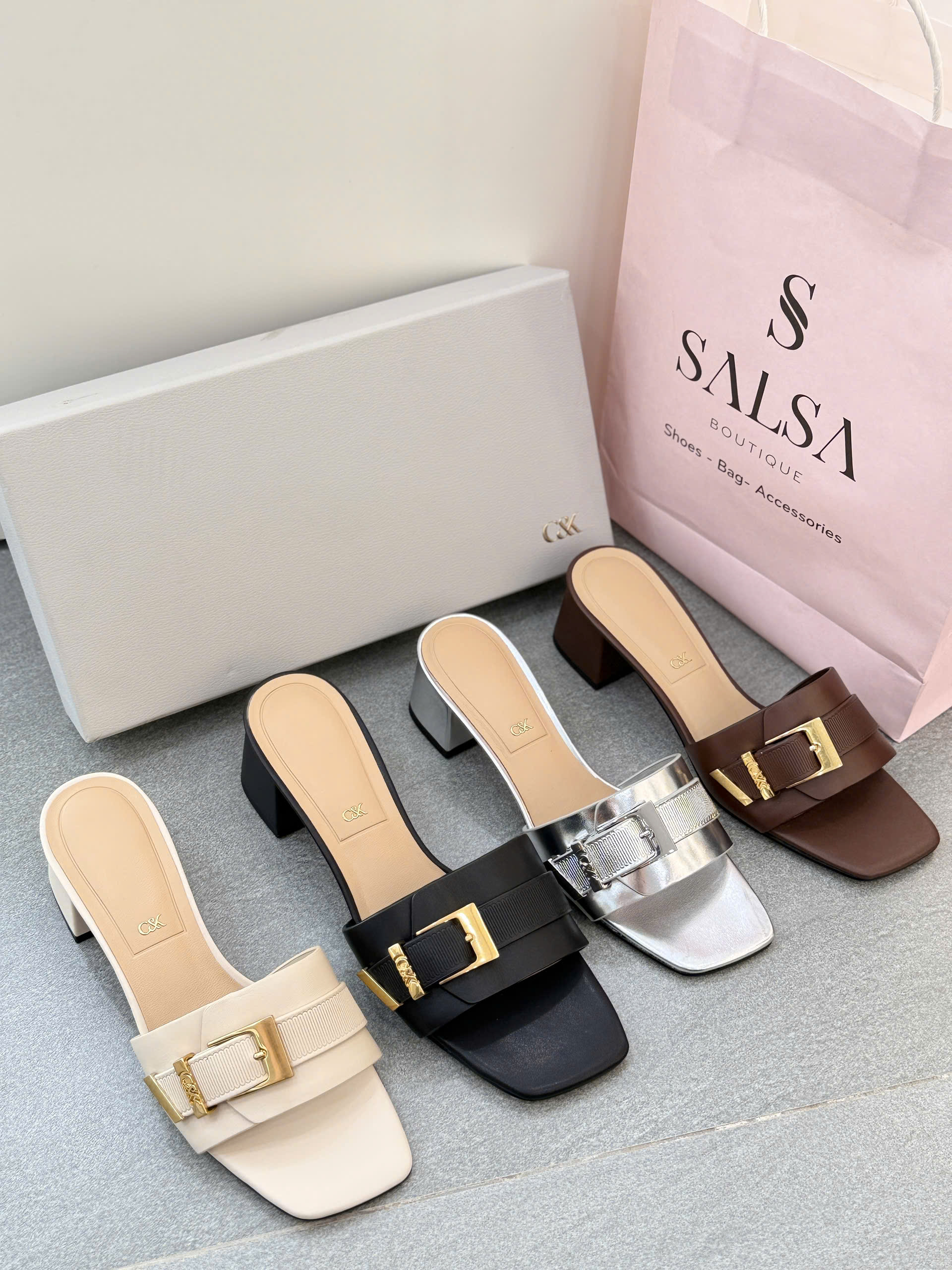 Guốc quai ngang bản to sang trọng với khóa vàng tinh tế, tạo điểm nhấn thanh lịch cho đôi chân. – Kiểu dáng: Dép cao gót – Chất liệu: PU – Chiều cao: 5cm