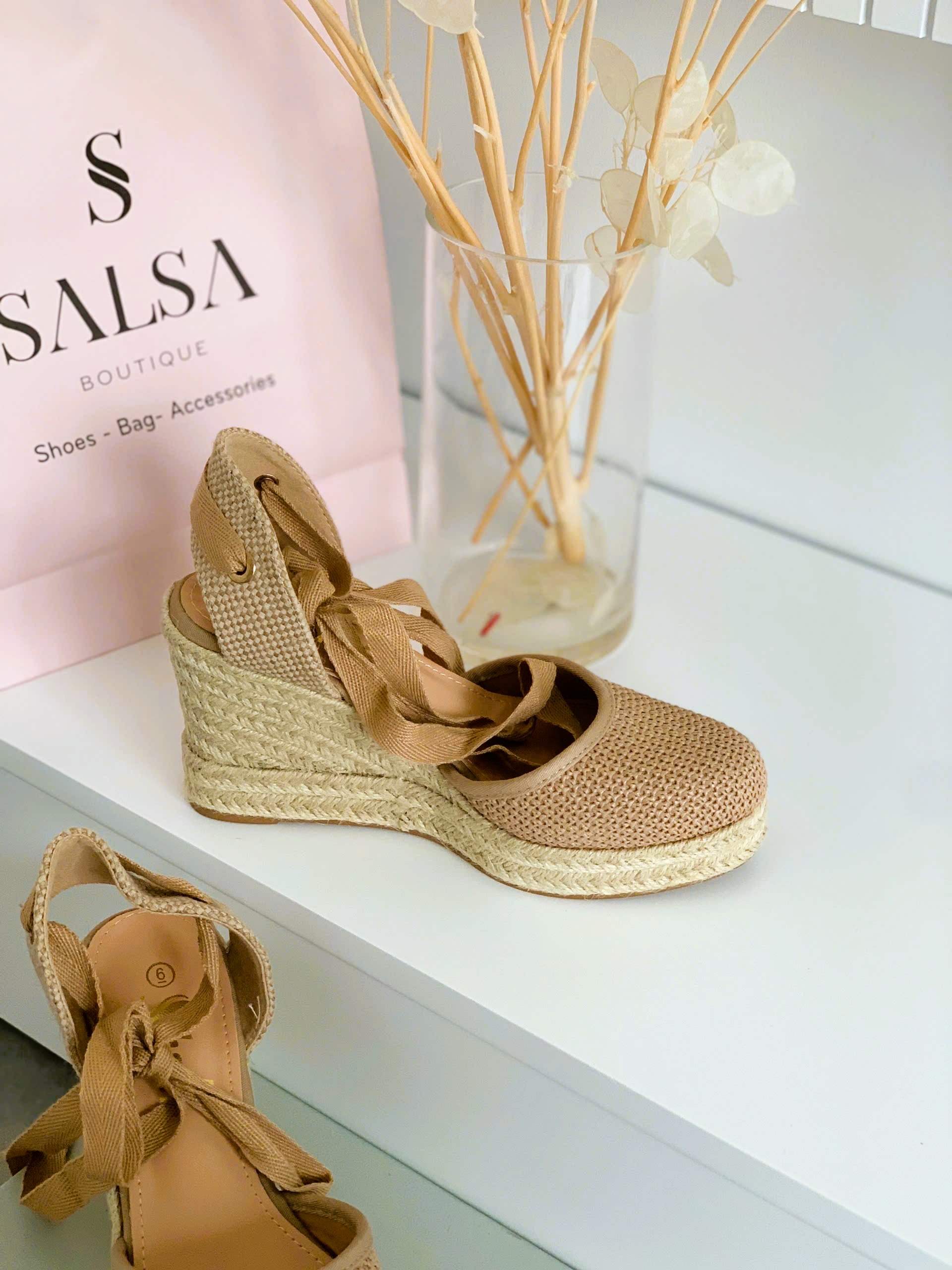 Thiết kế mở gót kết hợp dây đan chéo tạo điểm nhấn thanh lịch, dễ dàng phối hợp với nhiều trang phục khác nhau từ đi làm đến dạo phố. – Kiểu dáng: Dép xăng đan – Chất liệu: bên ngoài vải, lót PU, đế PU – Chiều cao: 8.5cm