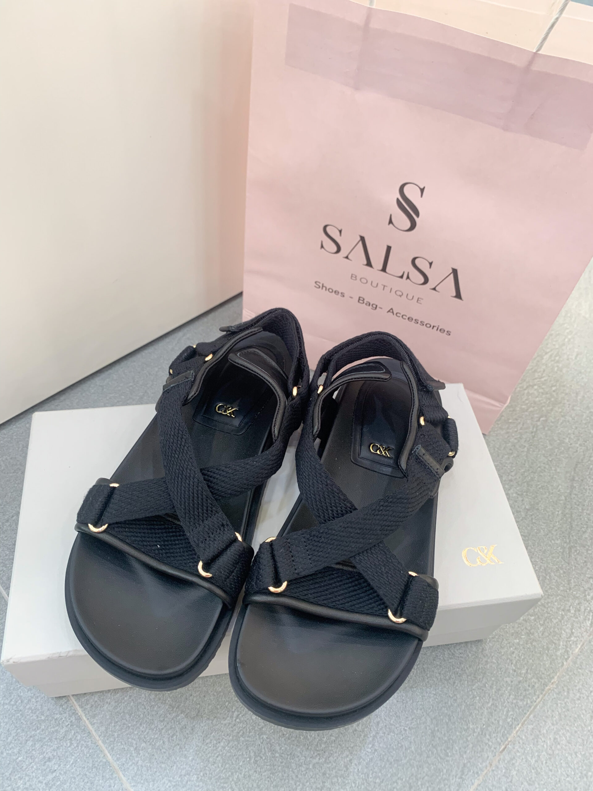 Dép xăng đan đế bệt với thiết kế quai chéo thời trang, kết hợp các chi tiết kim loại tinh tế tạo nên vẻ đẹp khỏe khoắn và hiện đại. Chất liệu mềm mại, thoáng khí mang đến sự thoải mái tối đa cho người mang.
