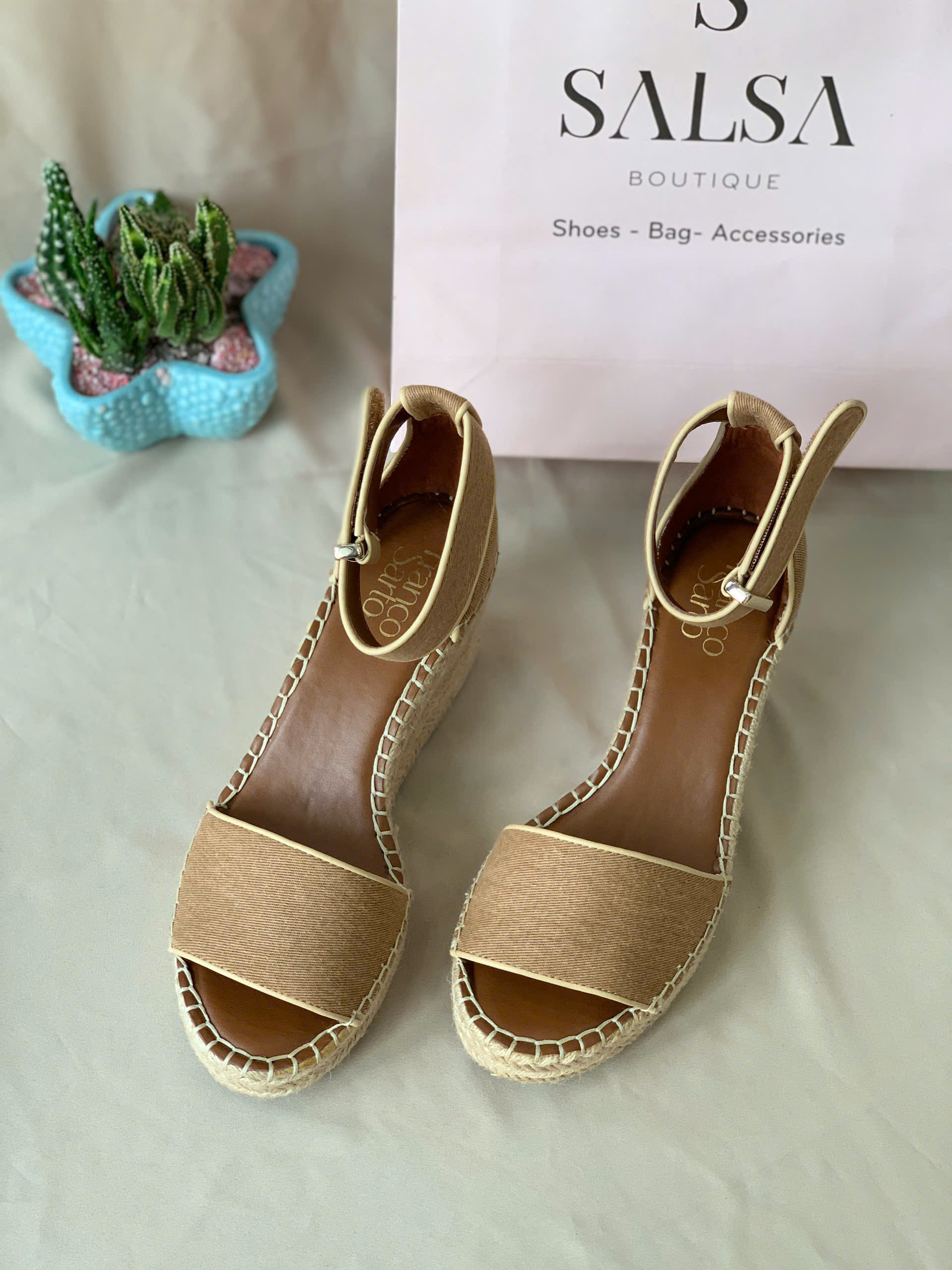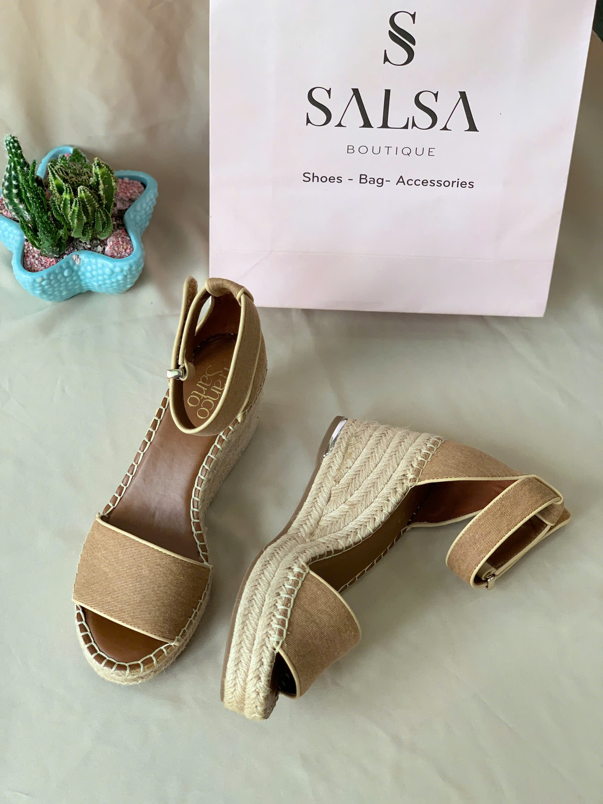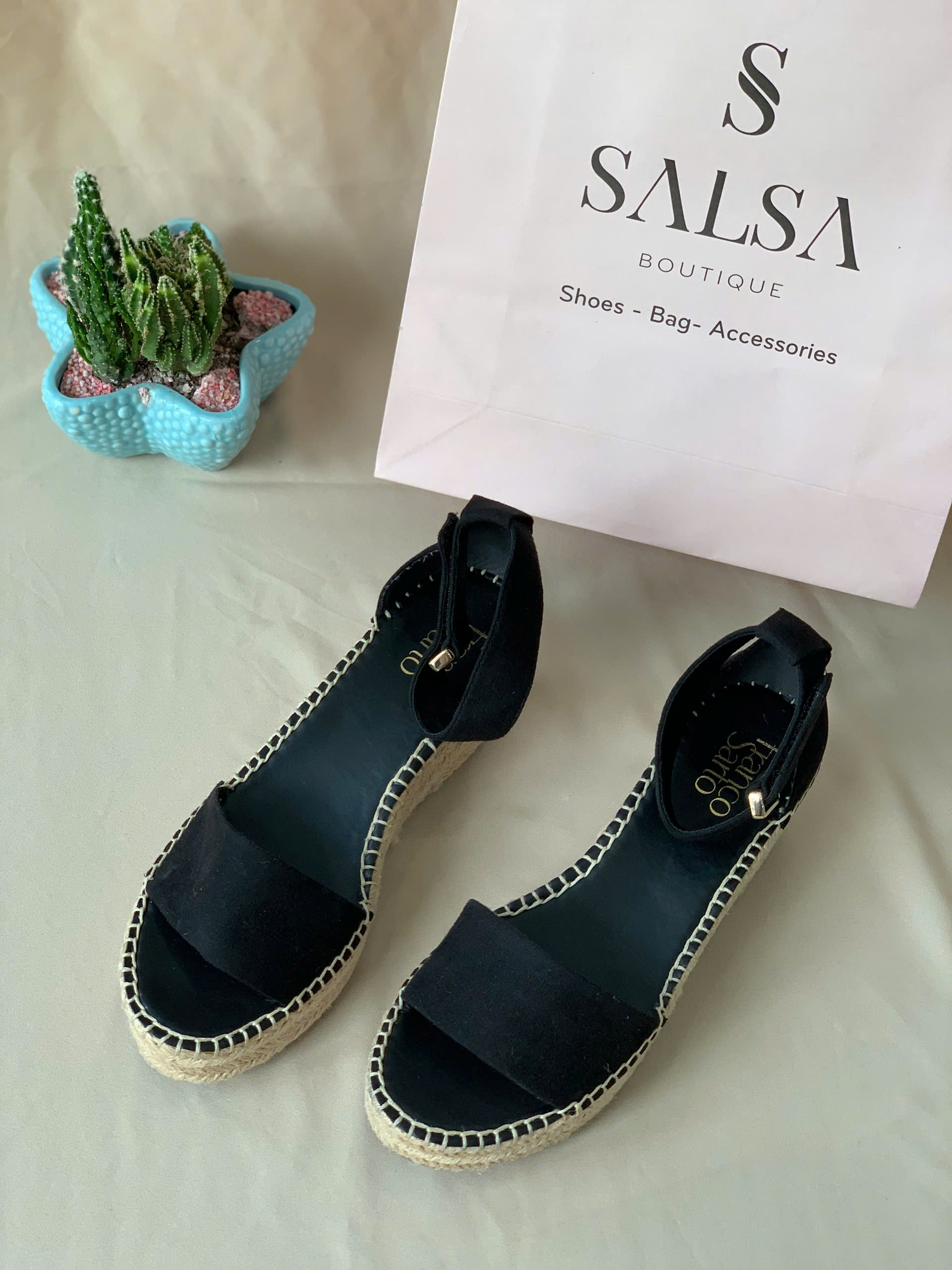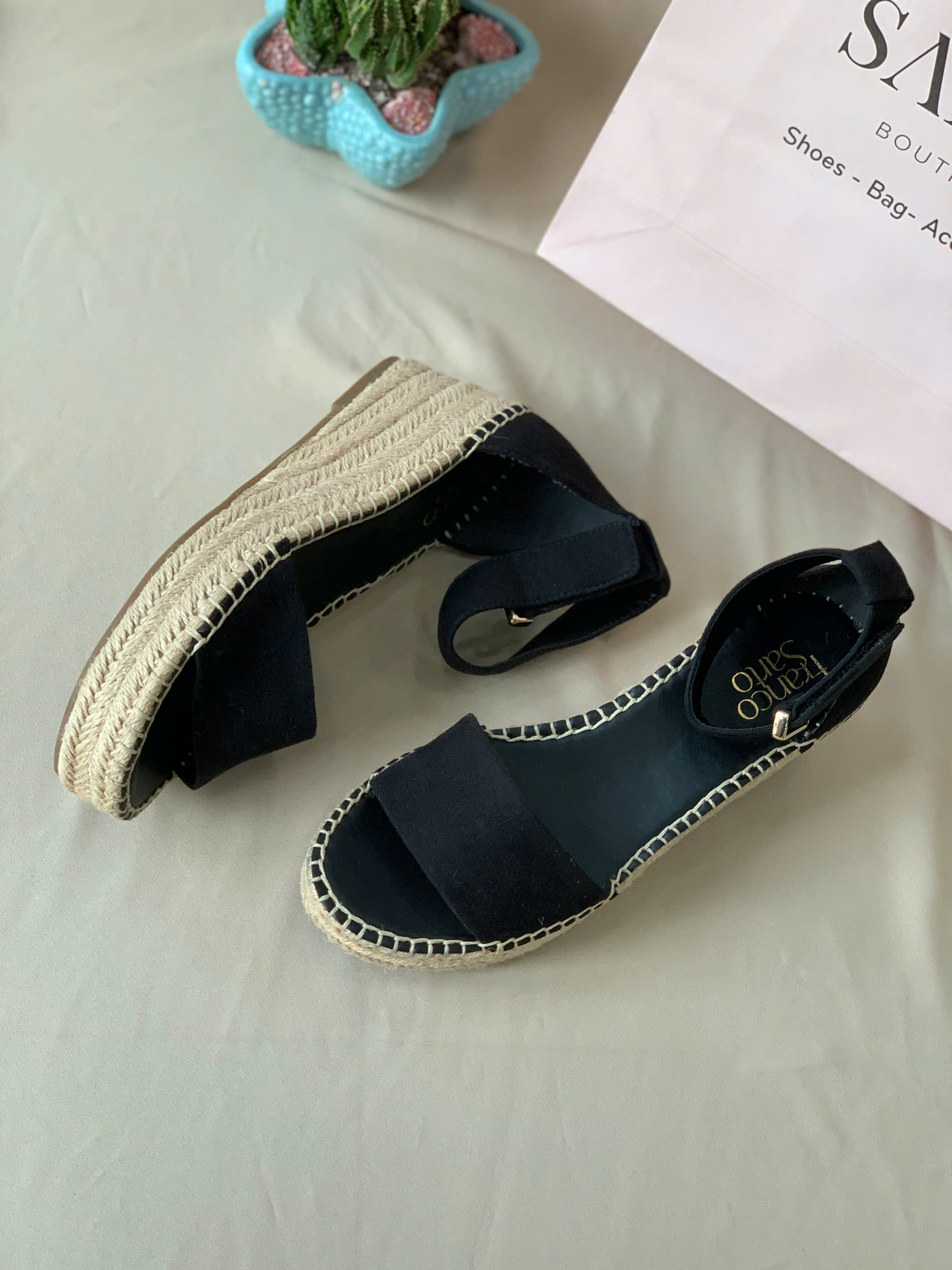 Mẫu sandal đế cói quai ngang mang phong cách mộc mạc, thanh lịch với phần quai bản to chắc chắn cùng đế cói thủ công tinh tế. Kiểu dáng sandal hở mũi, dây khoá gài sau cổ chân giúp ôm chân vừa vặn, thích hợp cho những ngày hè nhẹ nhàng và thoải mái.