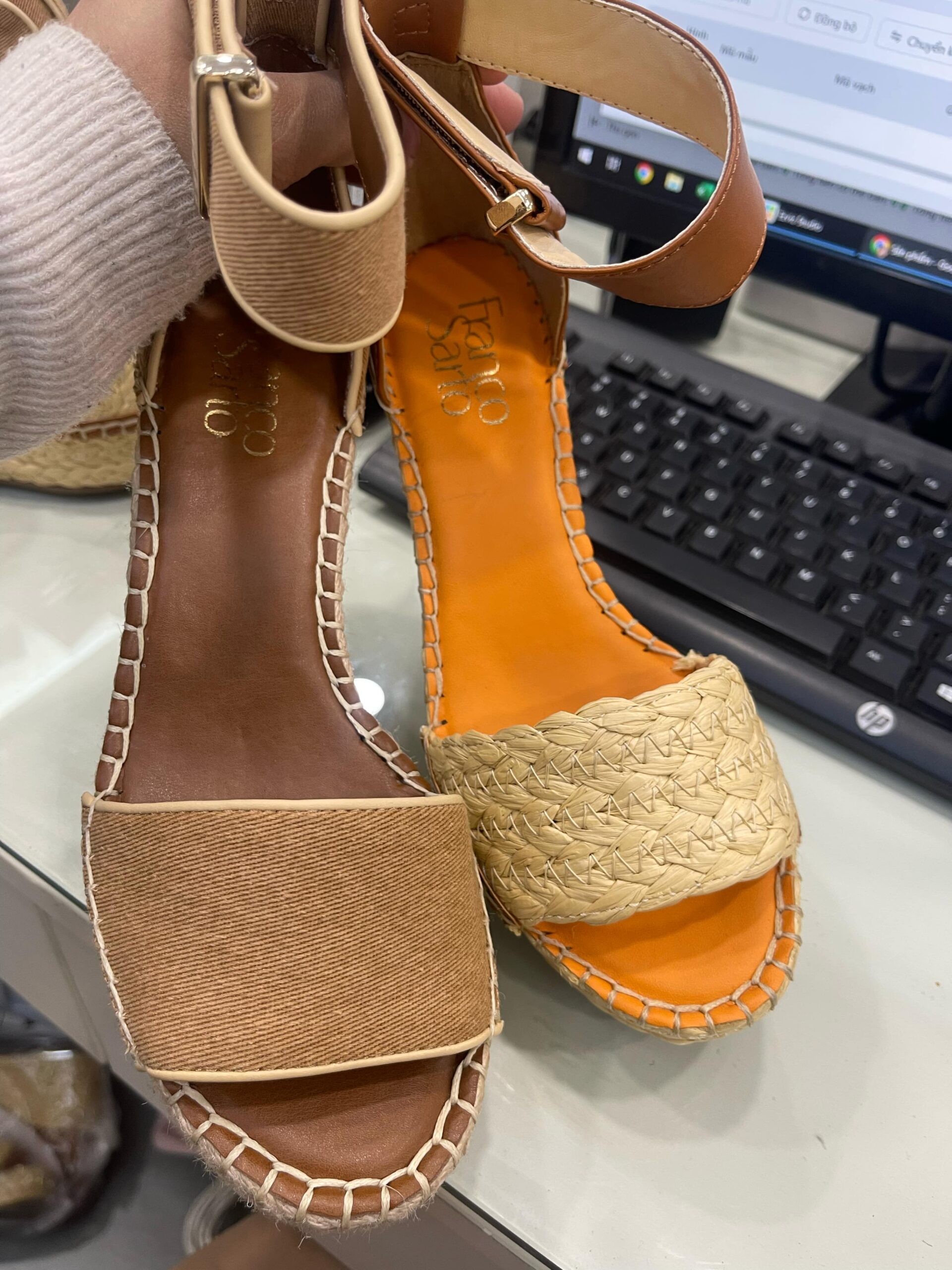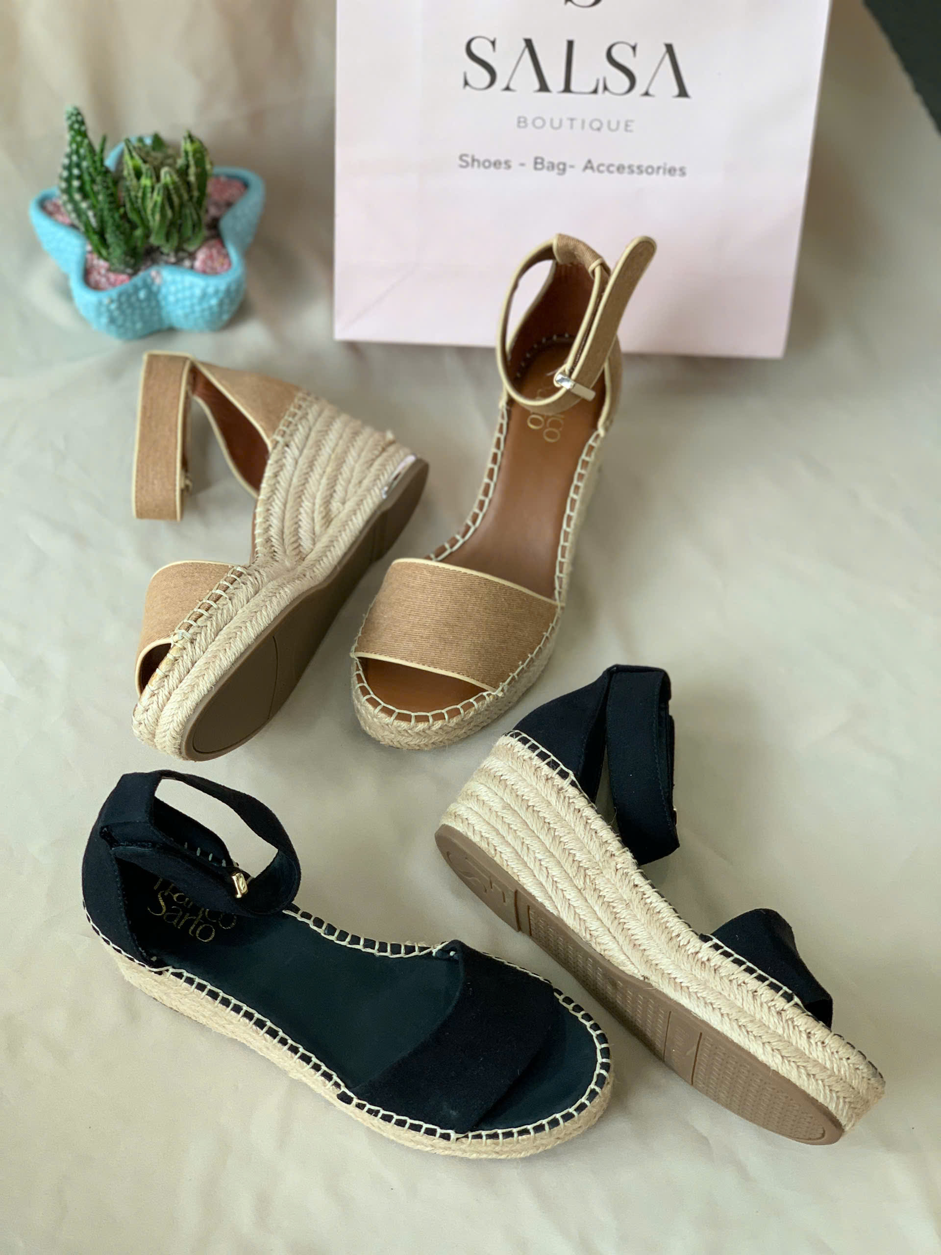 – Chất liệu: bên ngoài vải, lót PU, đế cói