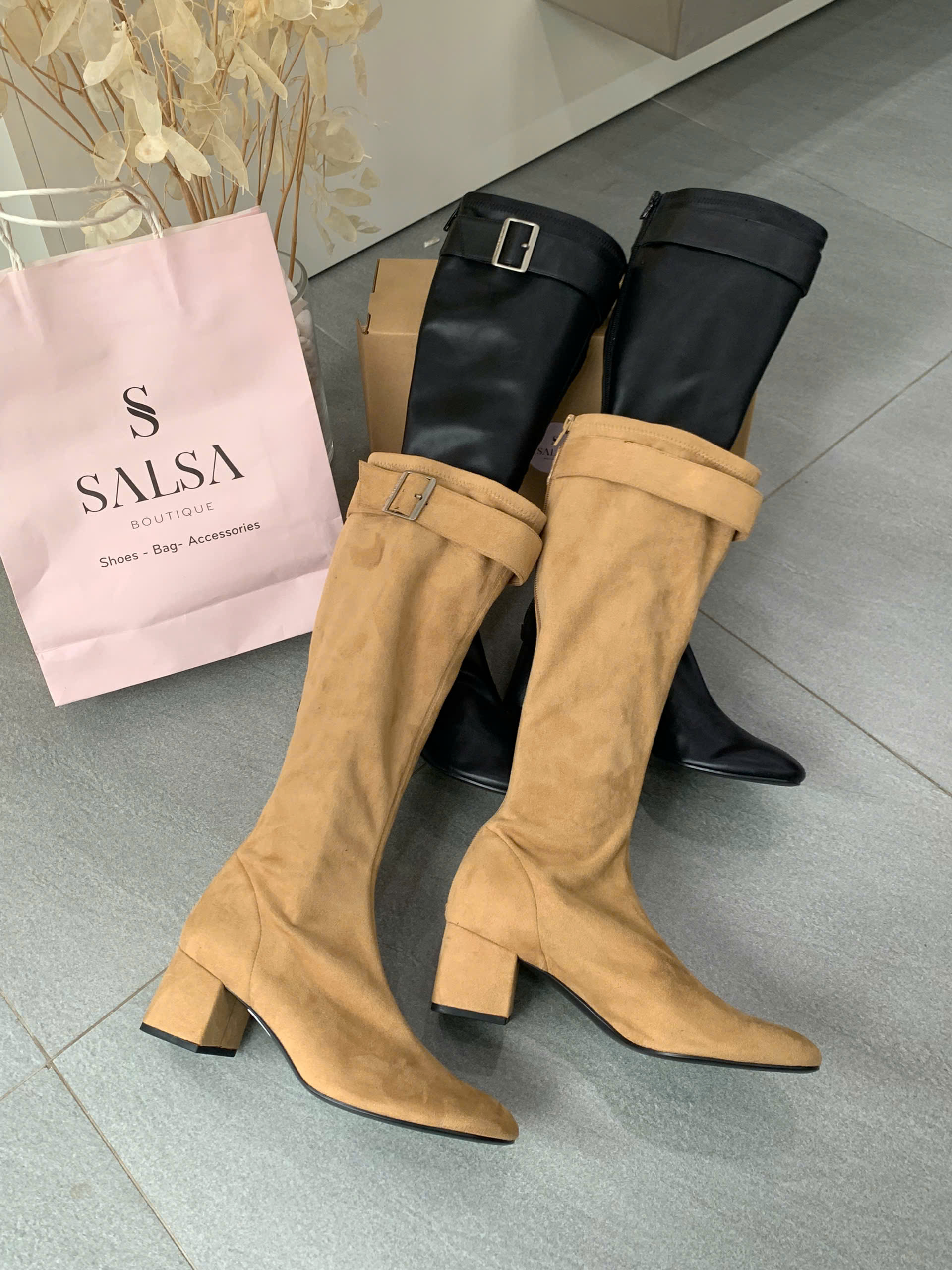 – Kiểu dáng: Giày boot đùi