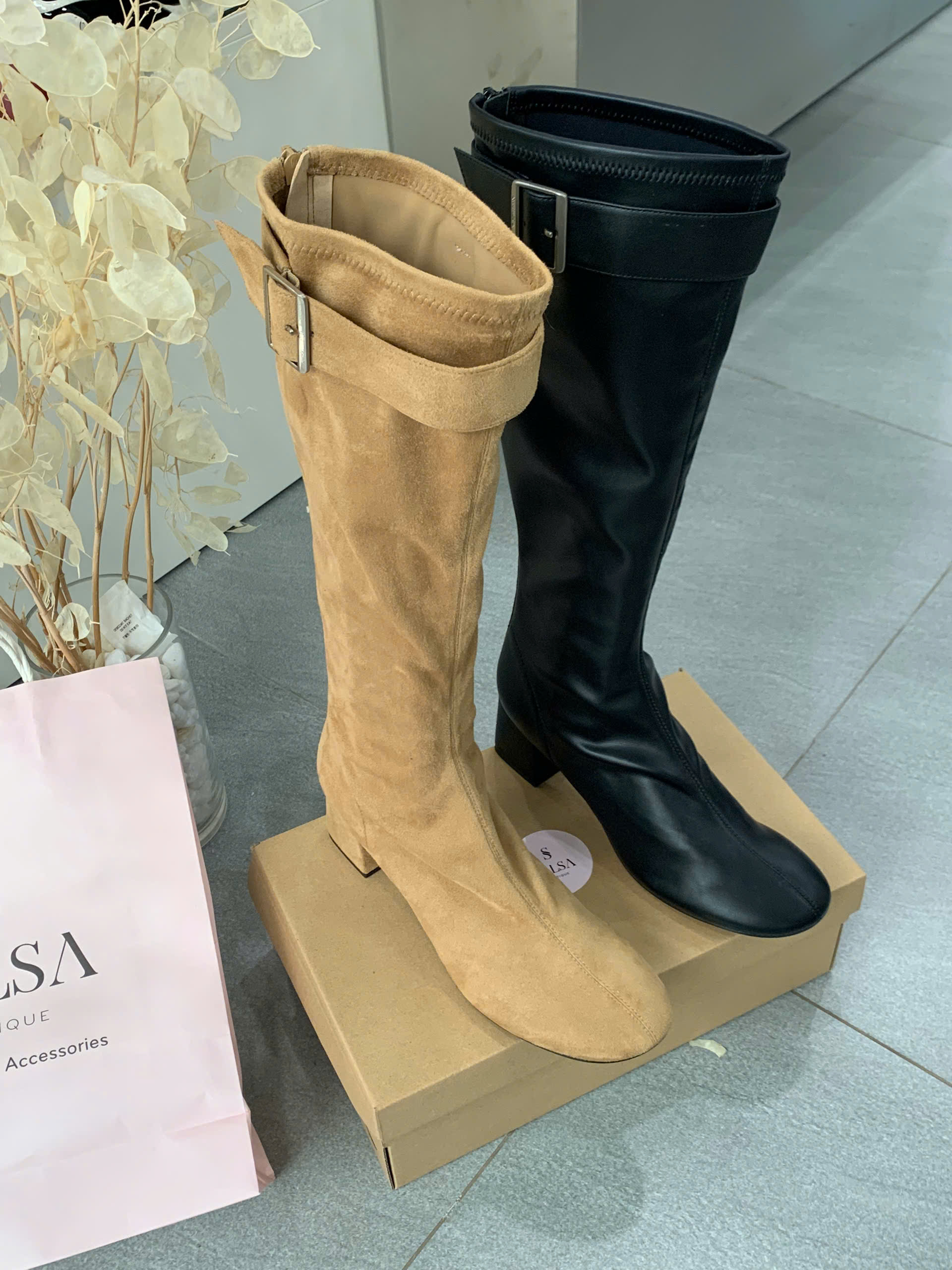Cổ boot có chi tiết đai gài kim loại bản lớn, tạo điểm nhấn thời thượng và giúp điều chỉnh độ rộng nhẹ. Dáng bốt ống ôm vừa phải, giúp kéo dài chân và tôn lên vóc dáng người mang. Là item “must-have” để phối cùng váy len, chân váy ngắn, quần skinny jeans hoặc leggings, giúp giữ ấm và tạo phong cách thời trang sành điệu trong thời tiết se lạnh.