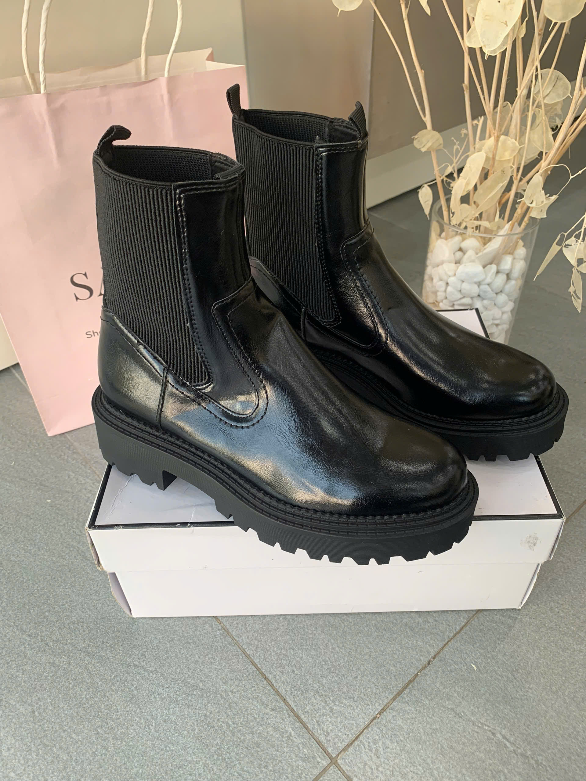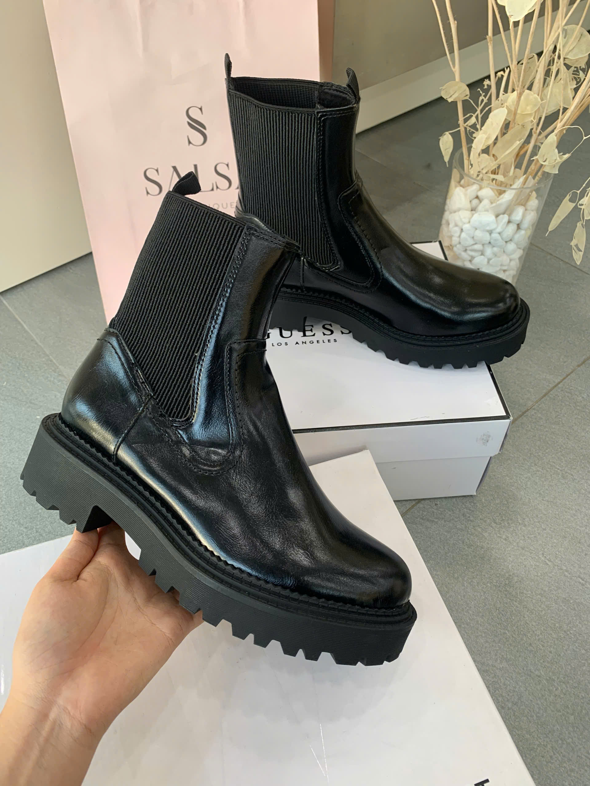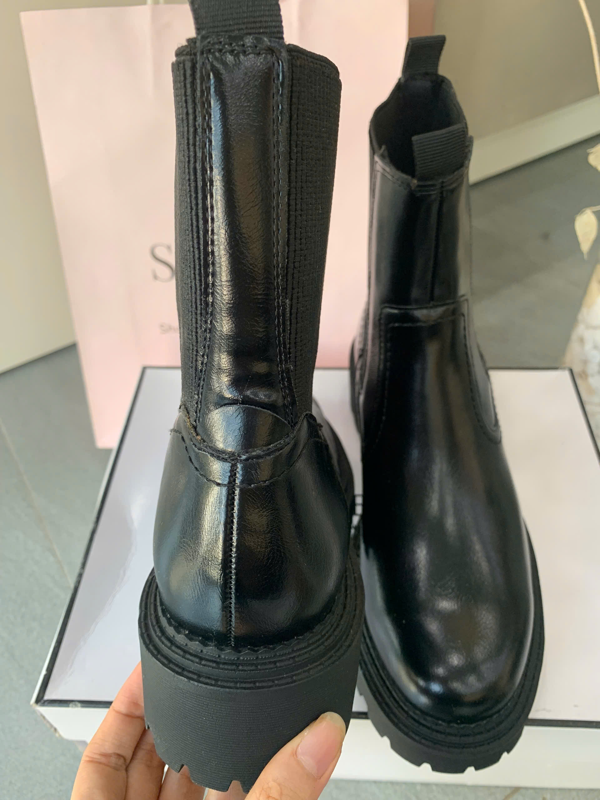 Đôi boot ngắn kiểu dáng Chelsea boot cổ ngắn, với đặc trưng là miếng thun co giãn ở hai bên cổ chân, giúp dễ dàng xỏ vào/tháo ra. Điểm nhấn nổi bật là phần đế chunky dày dặn và cao, mang lại vẻ ngoài cá tính, hiện đại và tăng chiều cao. Đây là món đồ hoàn hảo để mix cùng quần jean bó, váy ngắn hoặc chân váy midi cho phong cách năng động, thời thượng.