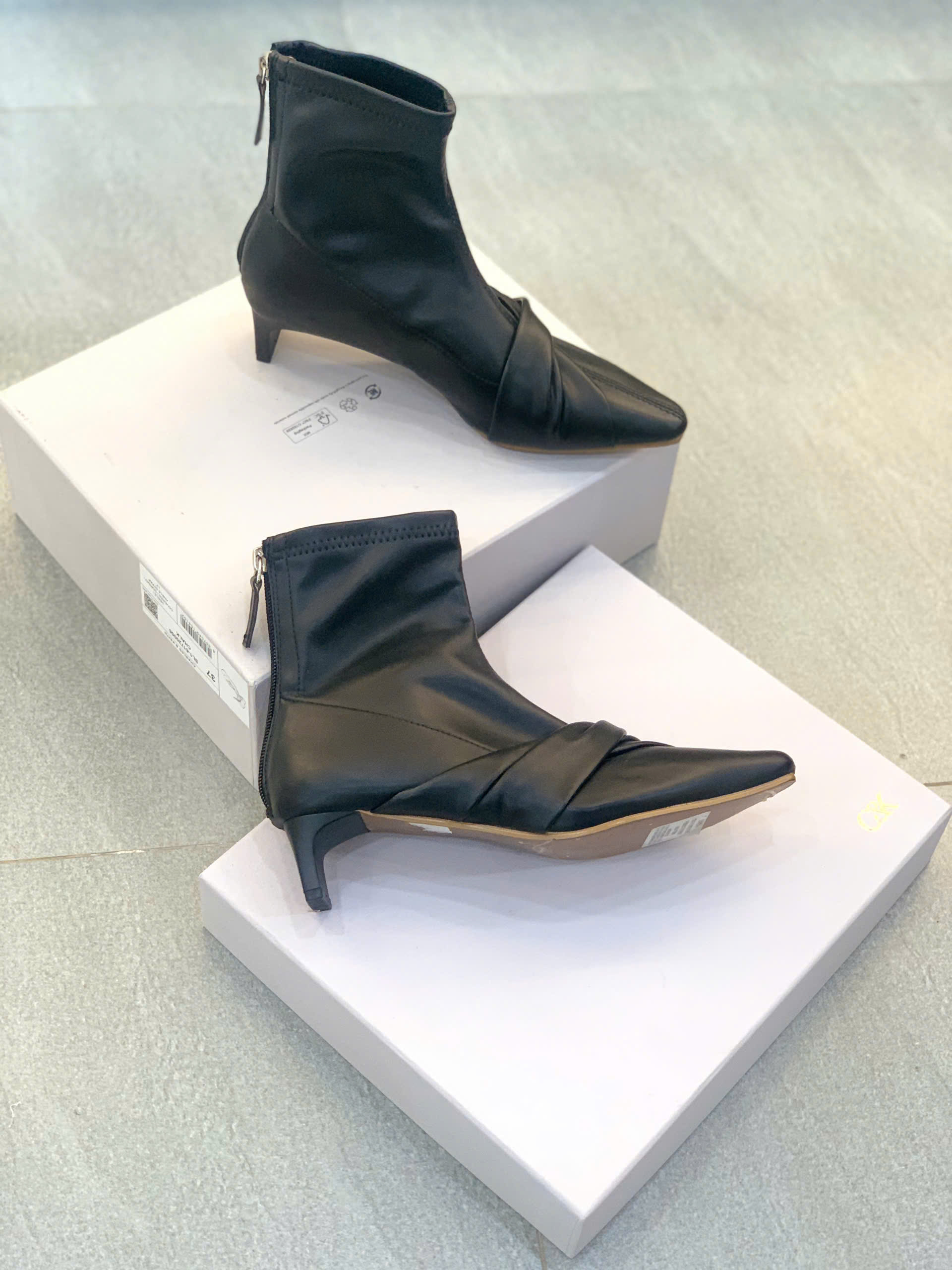 Giày boot STRAKELA với thiết kế mũi nhọn thời trang, giúp kéo dài chân và tăng thêm nét thanh thoát, sành điệu. Chi tiết vắt chéo tinh tế ở phần mũi giày, tạo nên sự mềm mại, nữ tính và khác biệt so với các mẫu bốt cơ bản. Lý tưởng cho môi trường công sở hoặc dạo phố.