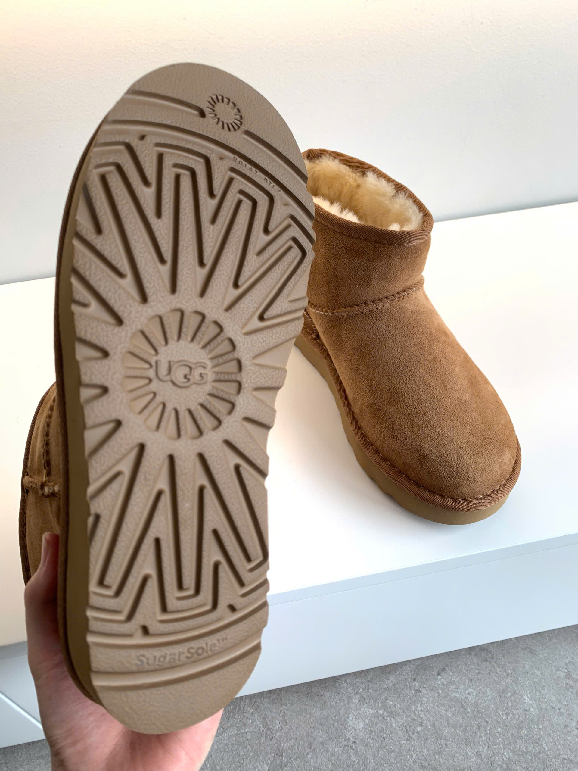 UGG cổ thấp mang phong cách thời trang hiện đại, kết hợp giữa chất da lộn cao cấp giúp giữ ấm tối đa mà vẫn đảm bảo gọn nhẹ và thoải mái khi di chuyển. Bên trong là lớp lông cừu tự nhiên siêu mềm, ôm trọn bàn chân, giữ ấm tuyệt đối nhưng vẫn thoáng khí – cho cảm giác thoải mái cả ngày dài.