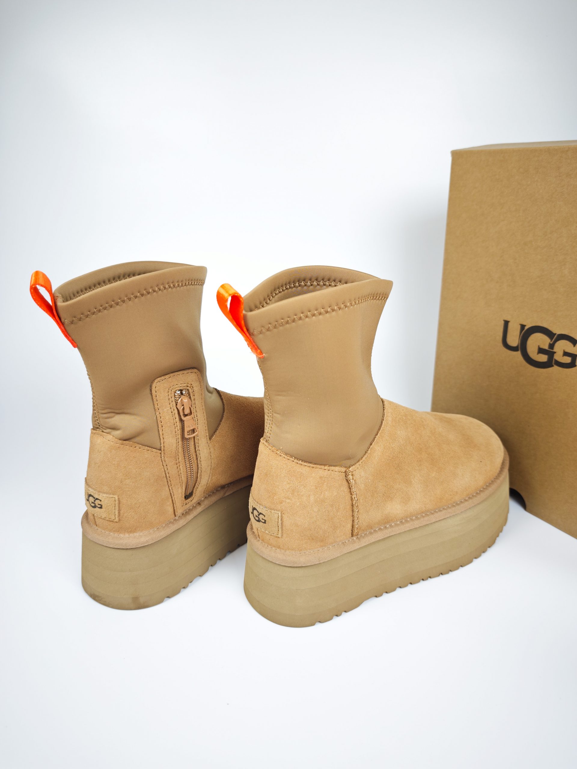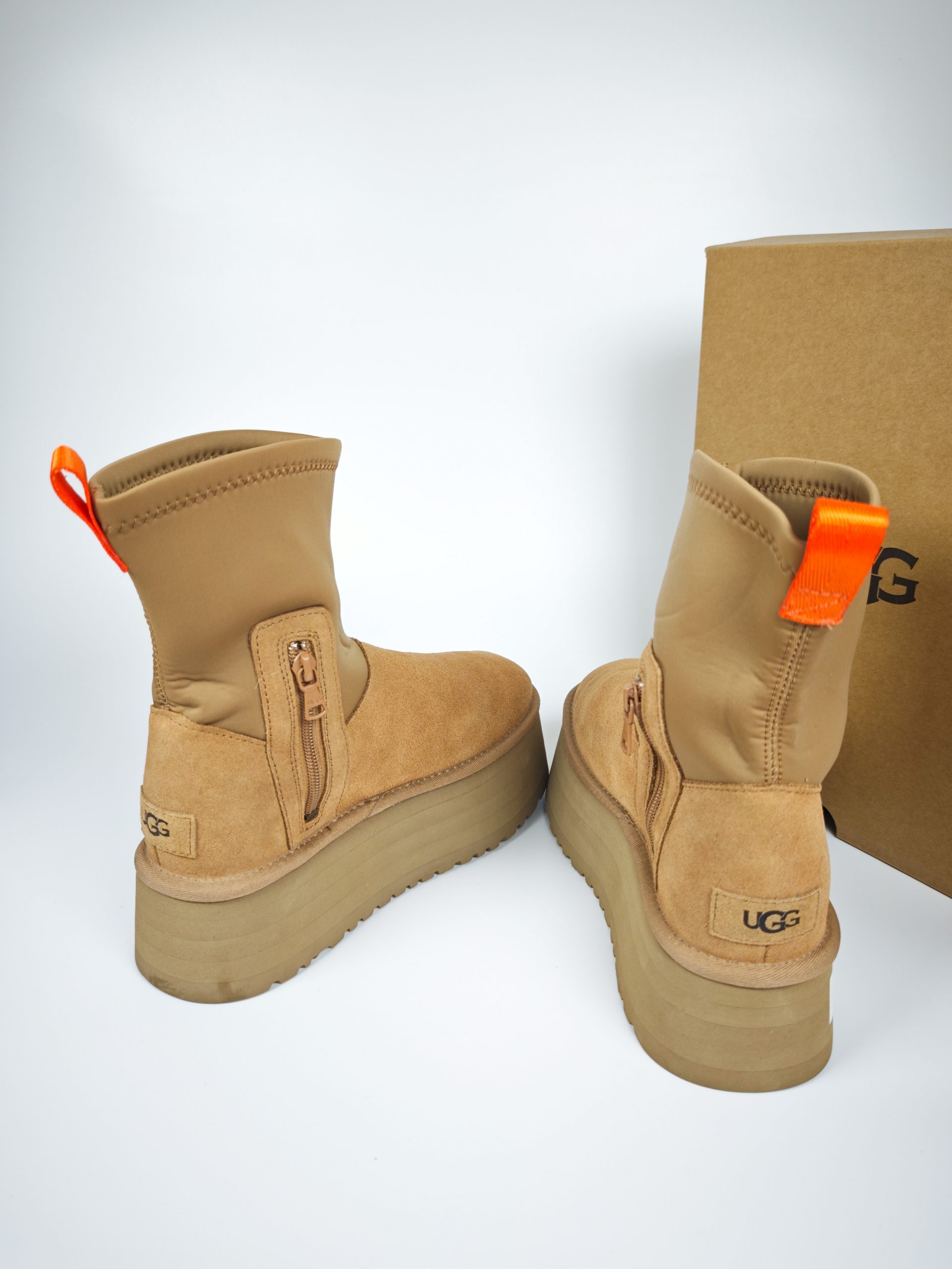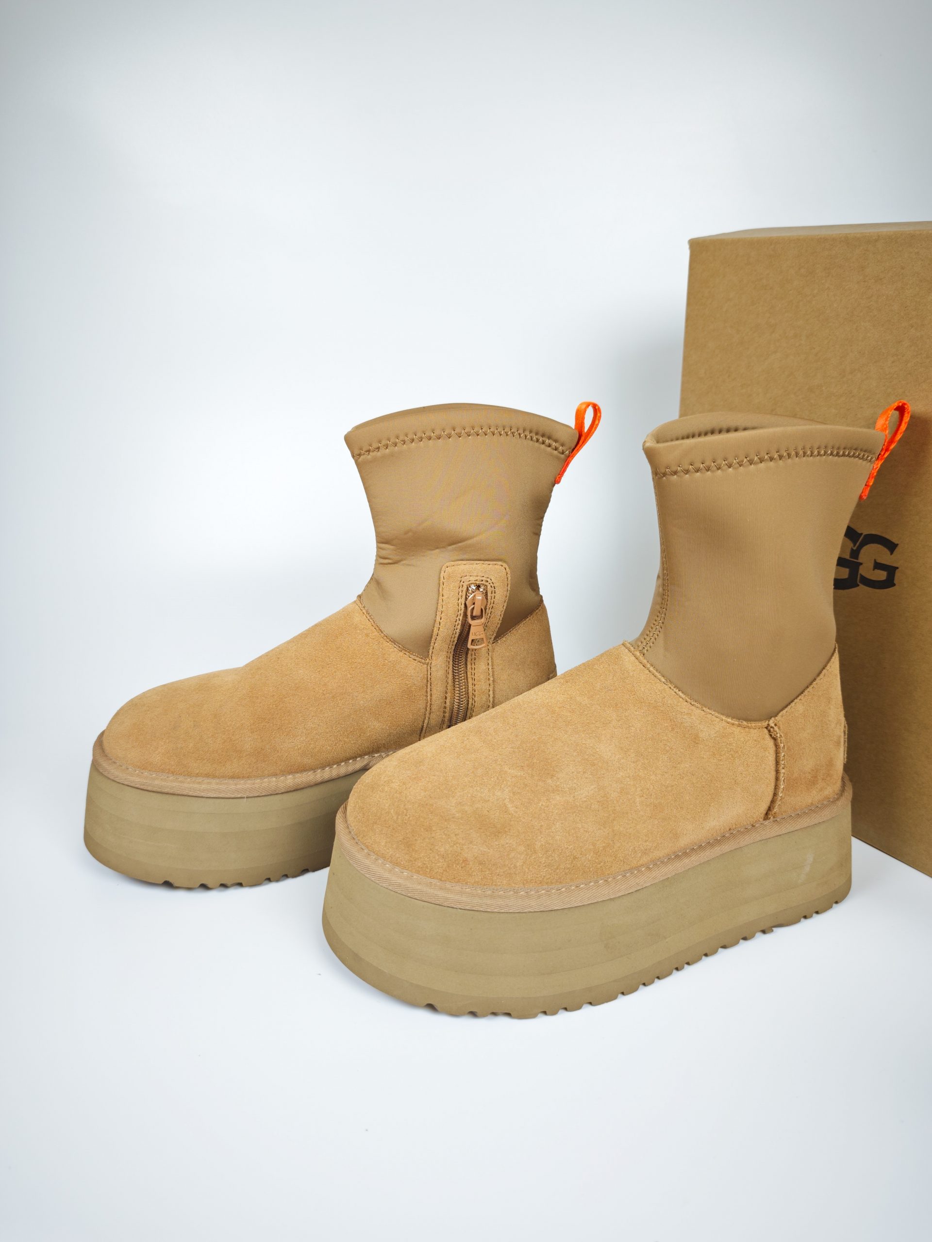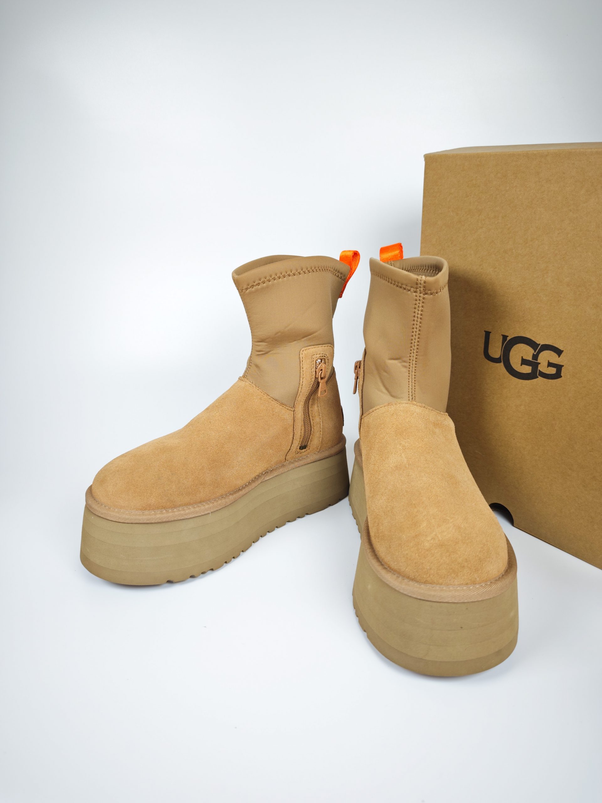UGG Classic Ultra Mini Puffer Platform – Boot cao cổ da lộn phối nylon chống nước, đế độn 5 cm