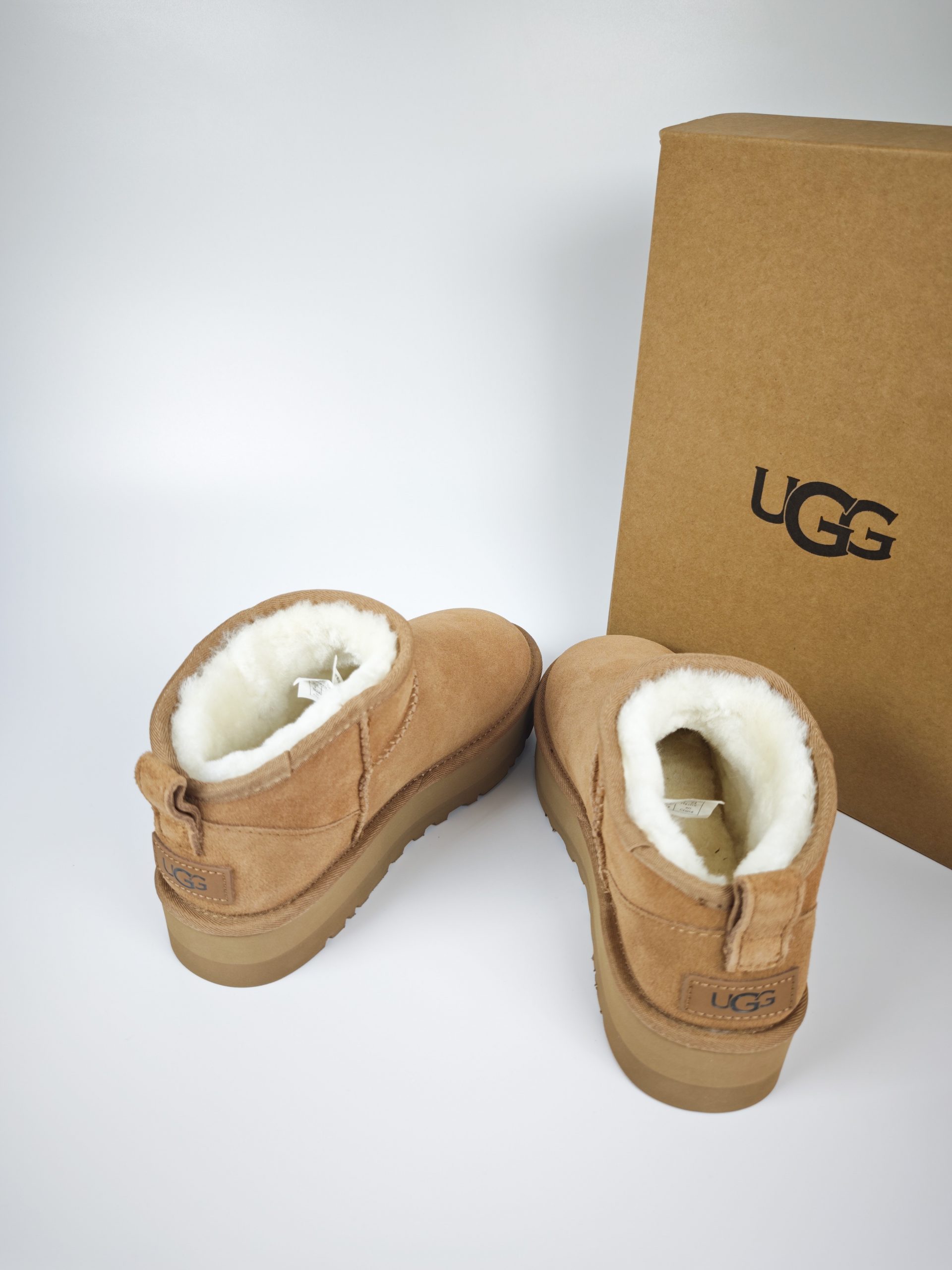 UGG Classic Ultra Mini Platform là phiên bản nâng cấp của dòng Classic Ultra Mini, với đế cao 5 cm giúp tôn dáng mà vẫn giữ nguyên độ êm ái và ấm áp đặc trưng.