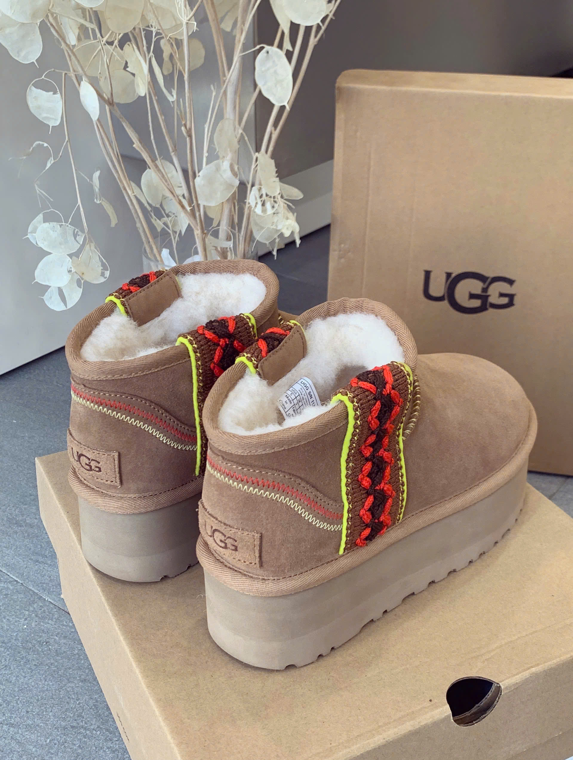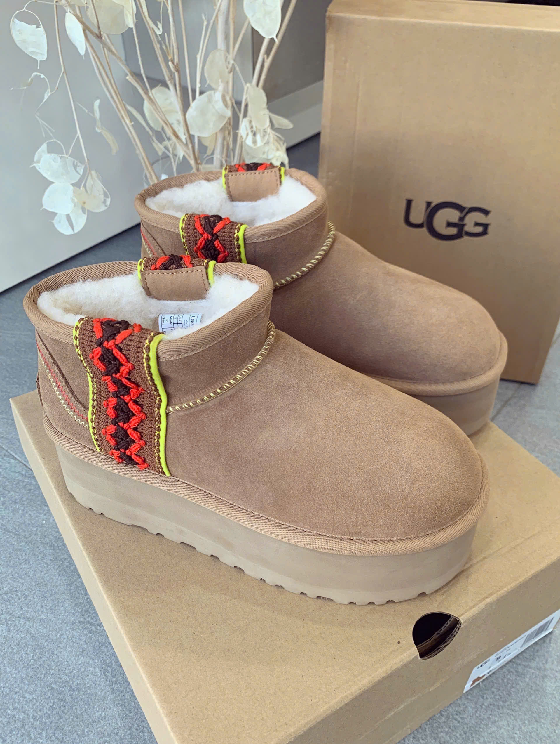 Giày UGG với điểm nhấn độc đáo và cá tính với đường viền thổ cẩm tạo nên sự khác biệt so với các mẫu UGG truyền thống. Chiều cao cổ thấp ngang mắt cá chân, dễ dàng mang/tháo và phối hợp với nhiều trang phục khác nhau như quần jeans, váy ngắn, hoặc quần legging. Mẫu UGG đang là hot trend được săn đón trên toàn thế giới, mang đến vẻ ngoài thời thượng và sành điệu.
