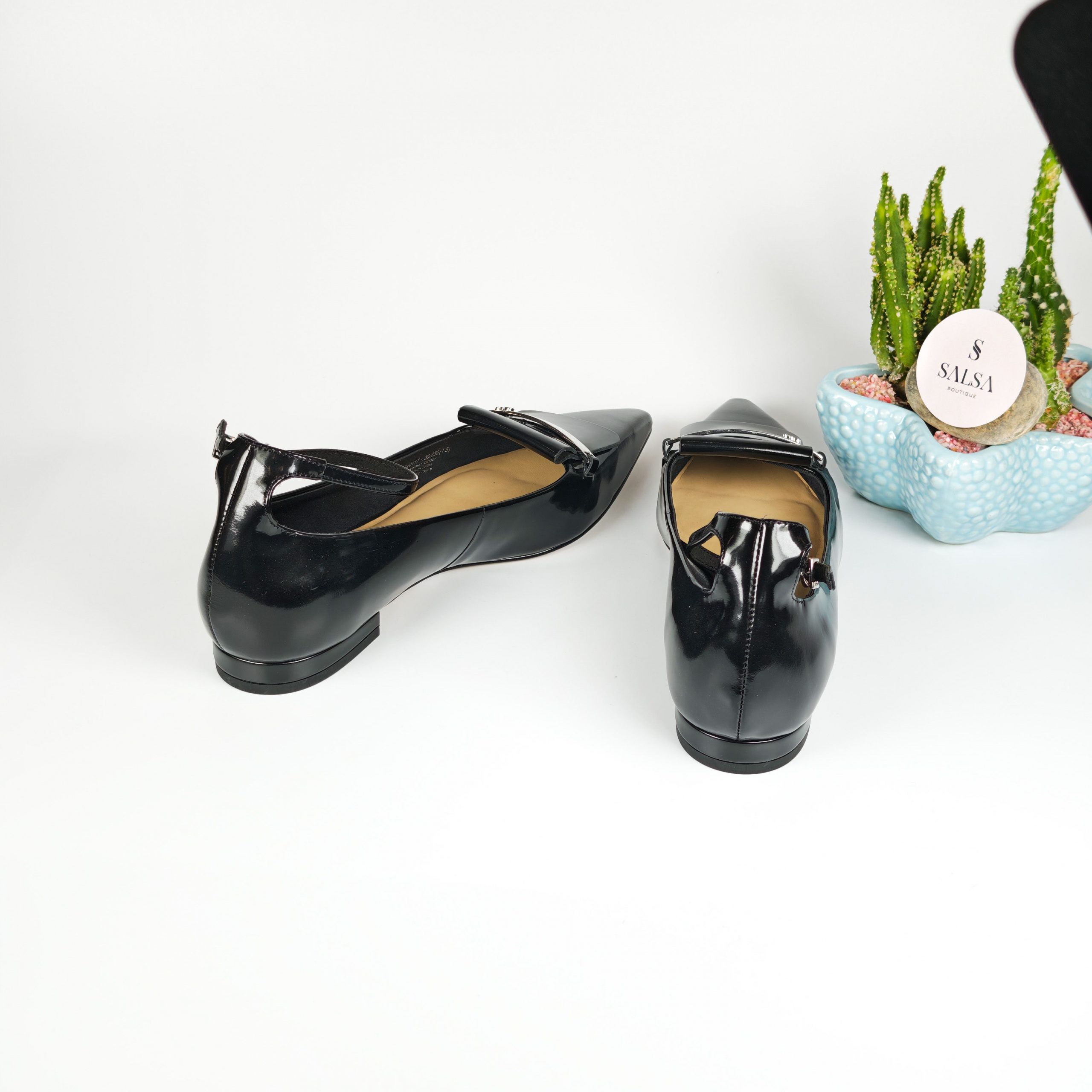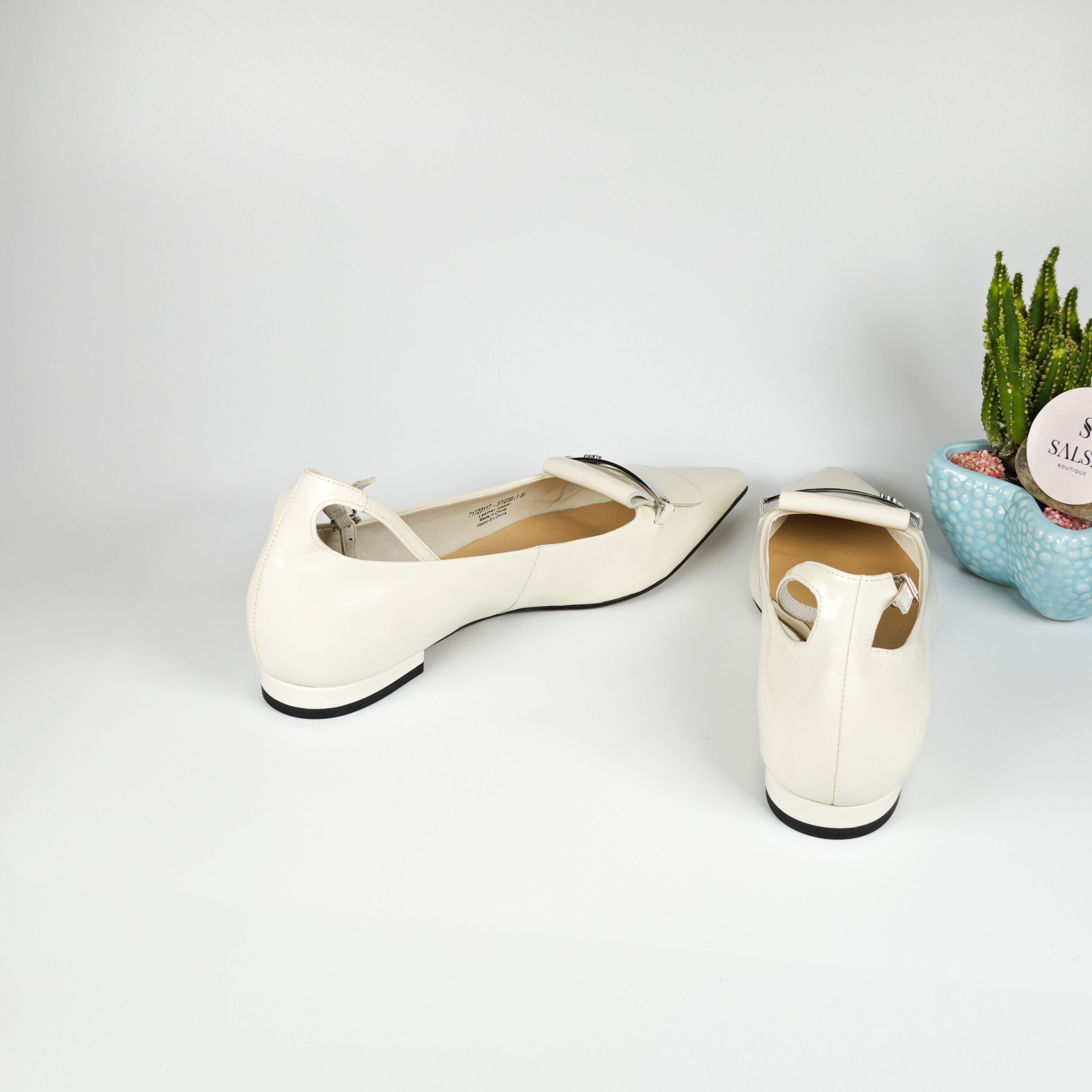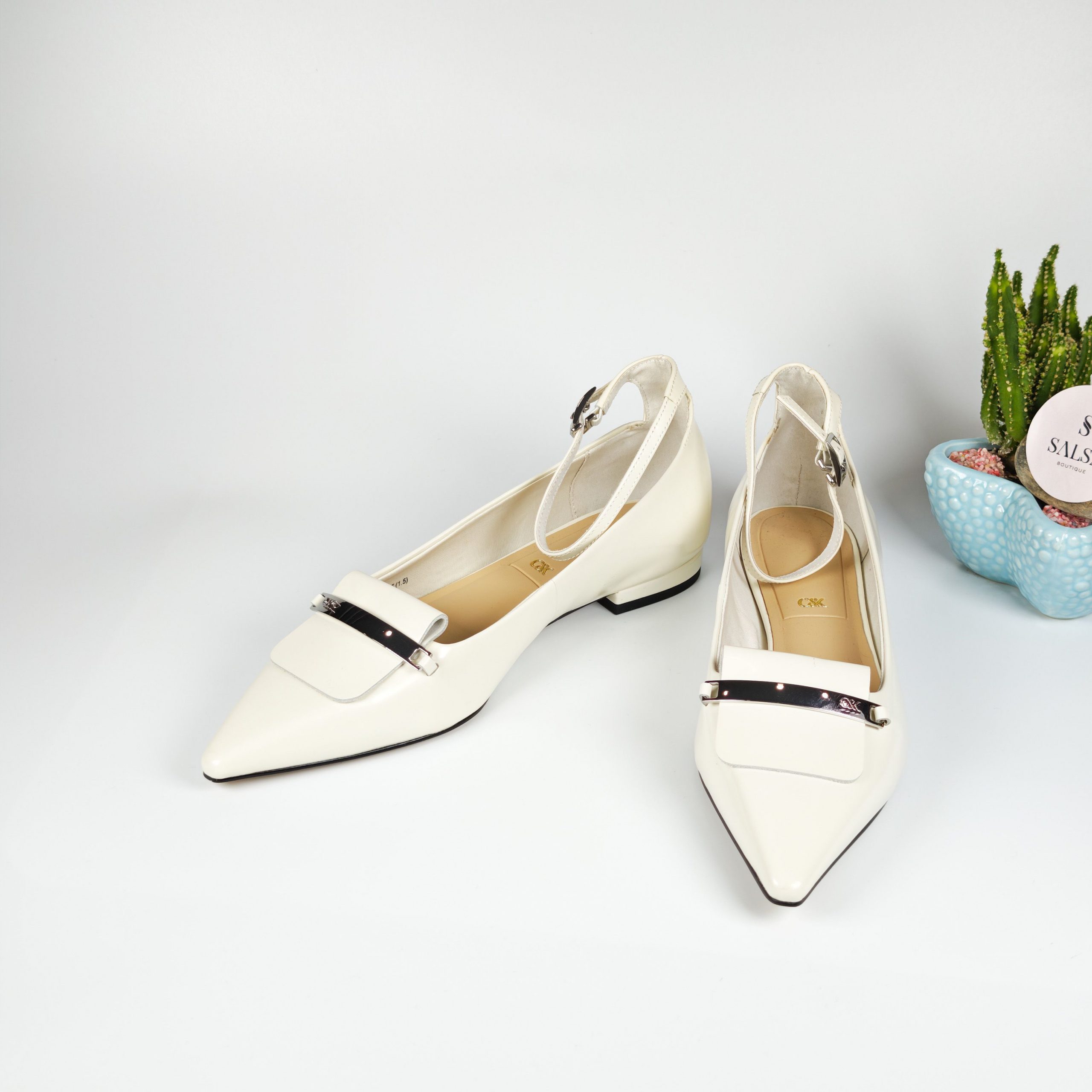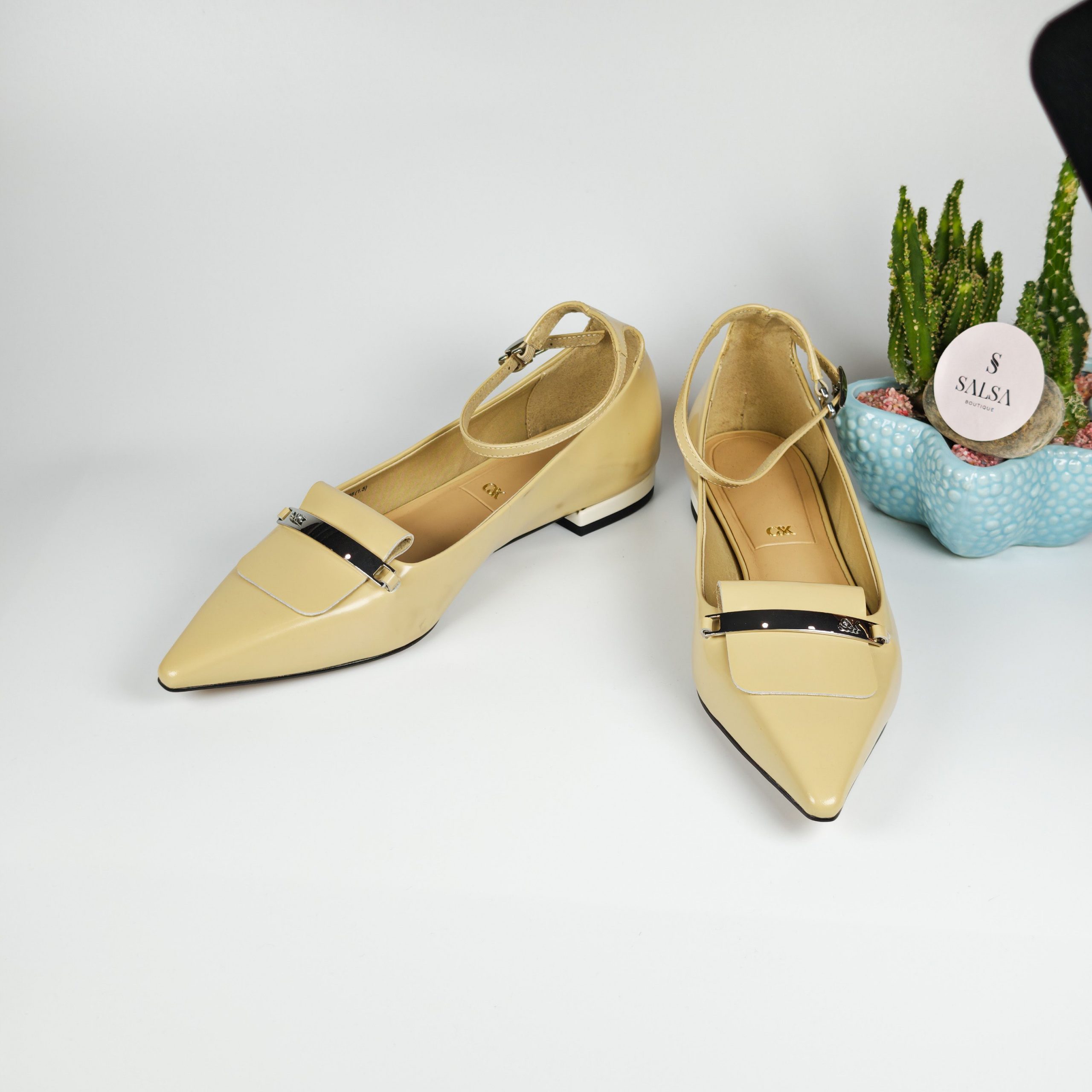 Đôi giày búp bê mũi nhọn với chất da bóng cao cấp và chi tiết khóa kim loại sang trọng tạo điểm nhấn tinh tế cho đôi chân. Phom dáng chuẩn, mũi nhọn giúp kéo dài chân, kết hợp đế thấp êm ái, dễ mang cả ngày mà không đau chân. Phù hợp đi làm, đi chơi, dự tiệc hoặc mix cùng váy – quần tây đều cực sang!