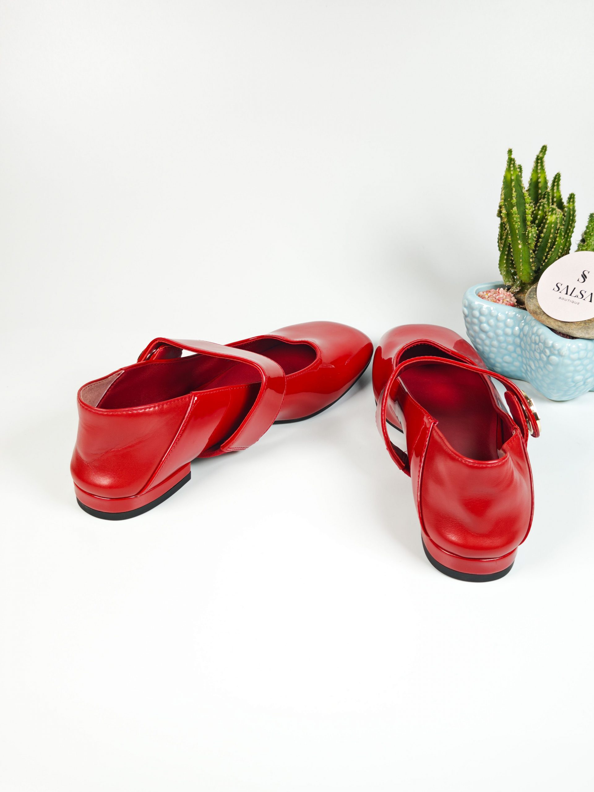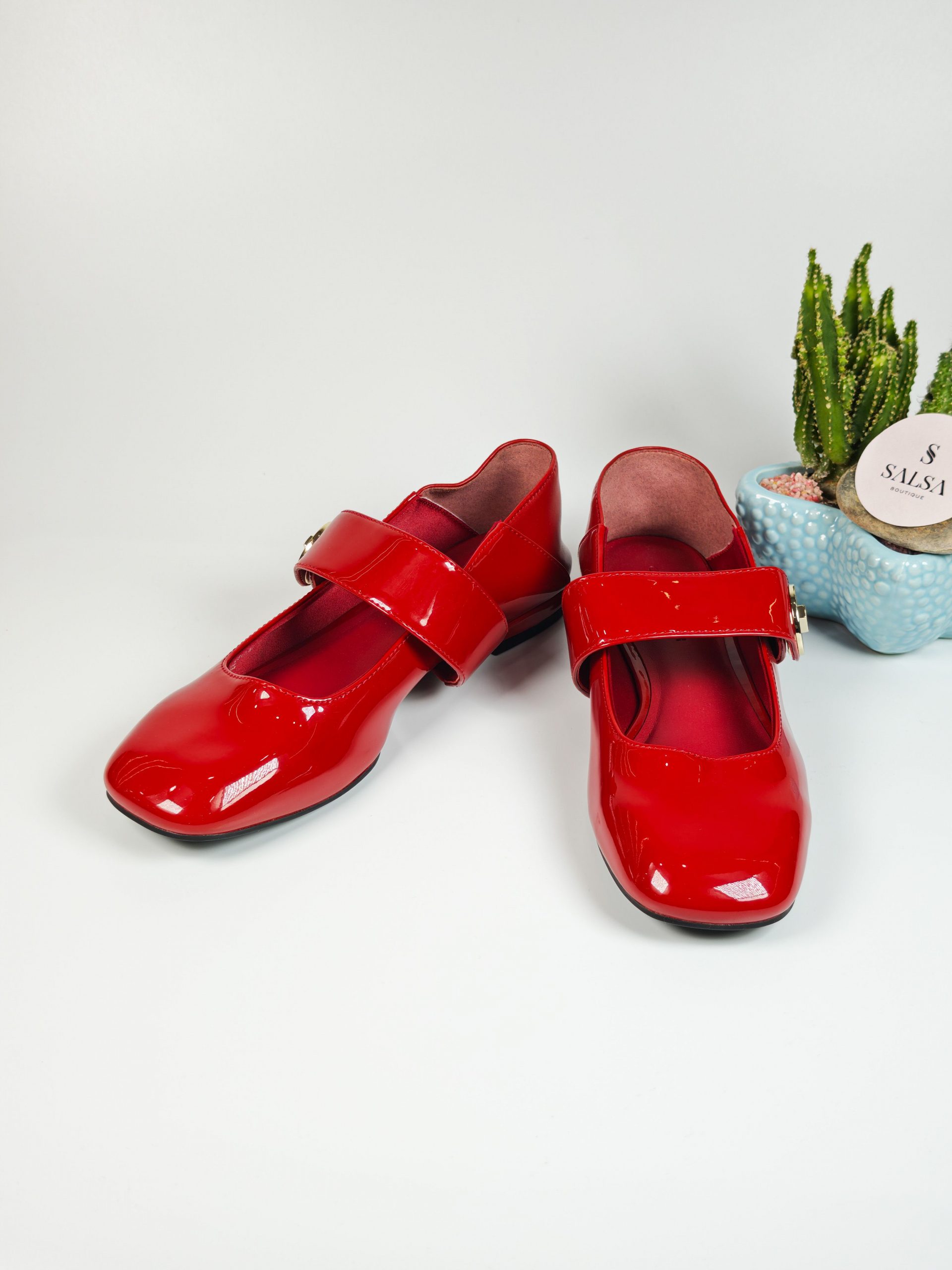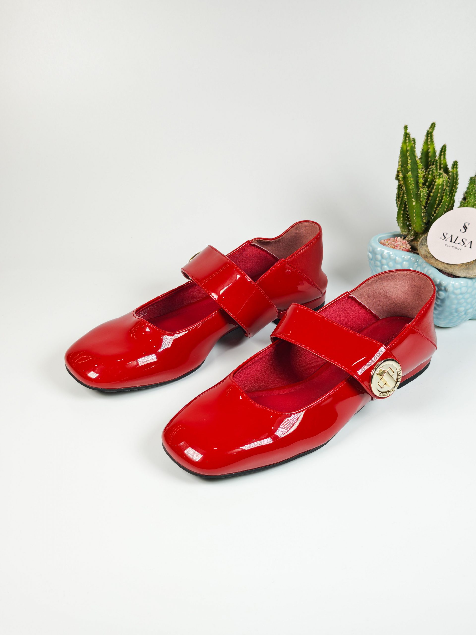 Giày búp bê cổ điển được làm mới với phần quai lớn bản to, giúp tạo điểm nhấn ấn tượng và giữ chân chắc chắn khi di chuyển. Phù hợp cho những cô nàng yêu phong cách nhẹ nhàng, nữ tính nhưng vẫn muốn nổi bật với sắc đỏ rực rỡ và thiết kế tinh tế.