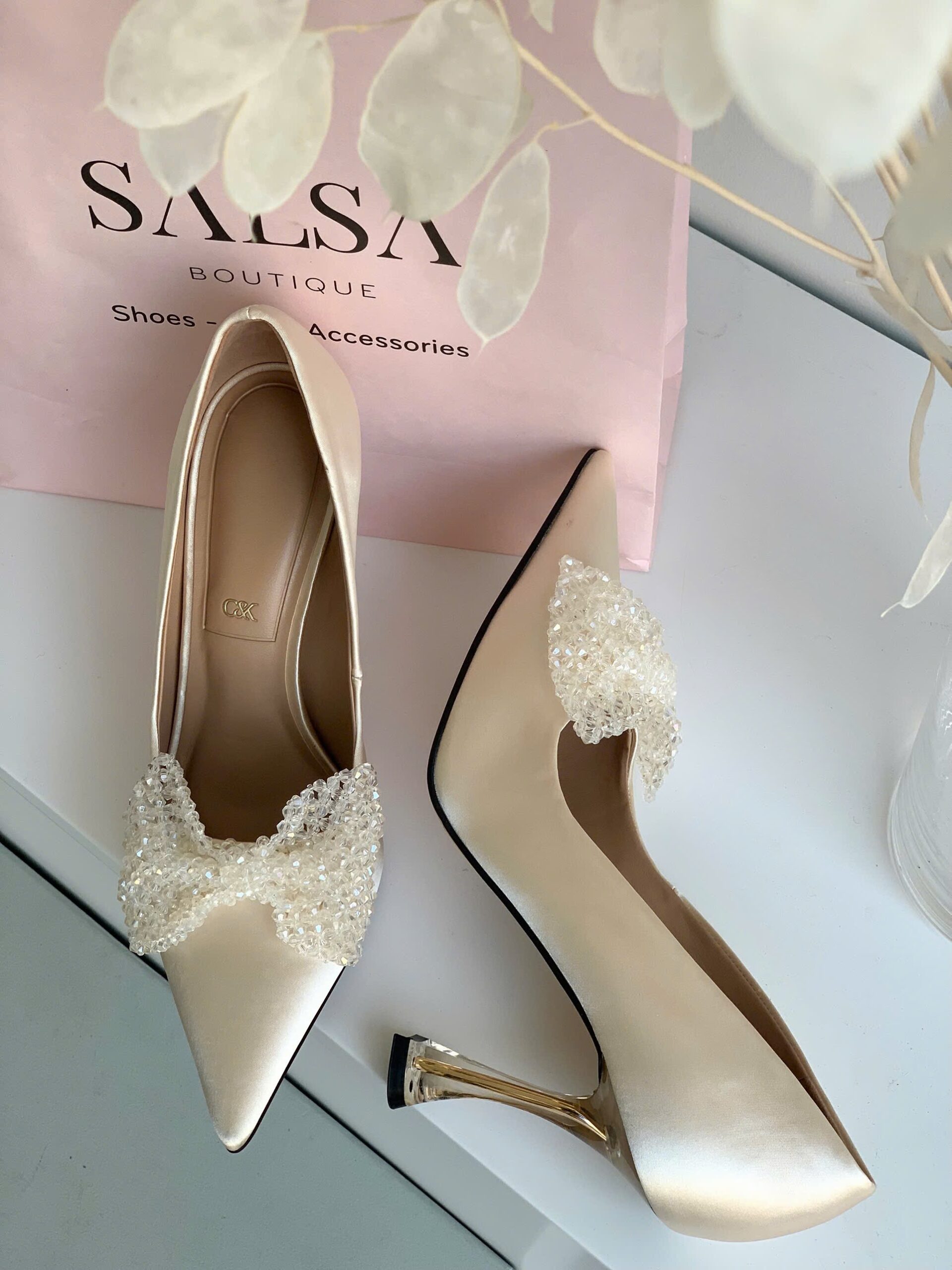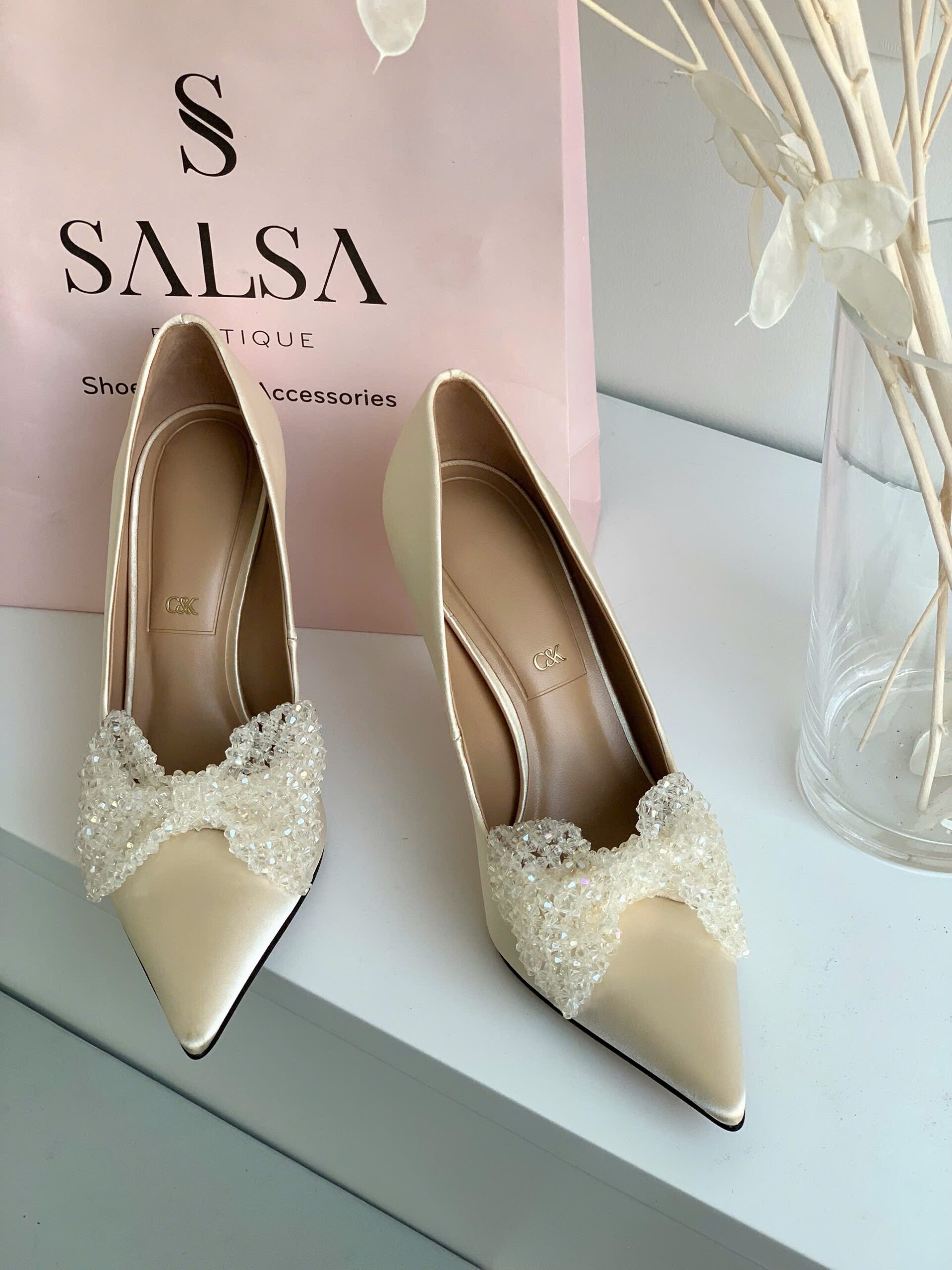 Nàng thơ mê cao gót ơi, không thể bỏ qua “em” cực phẩm từ nhà C`N`K này đâu nhé! Thiết kế chuẩn nàng thơ – dịu dàng mà vẫn đầy khí chất. – Kiểu dáng: Giày cao gót – Chất liệu: Vải – Chiều cao: 9cm