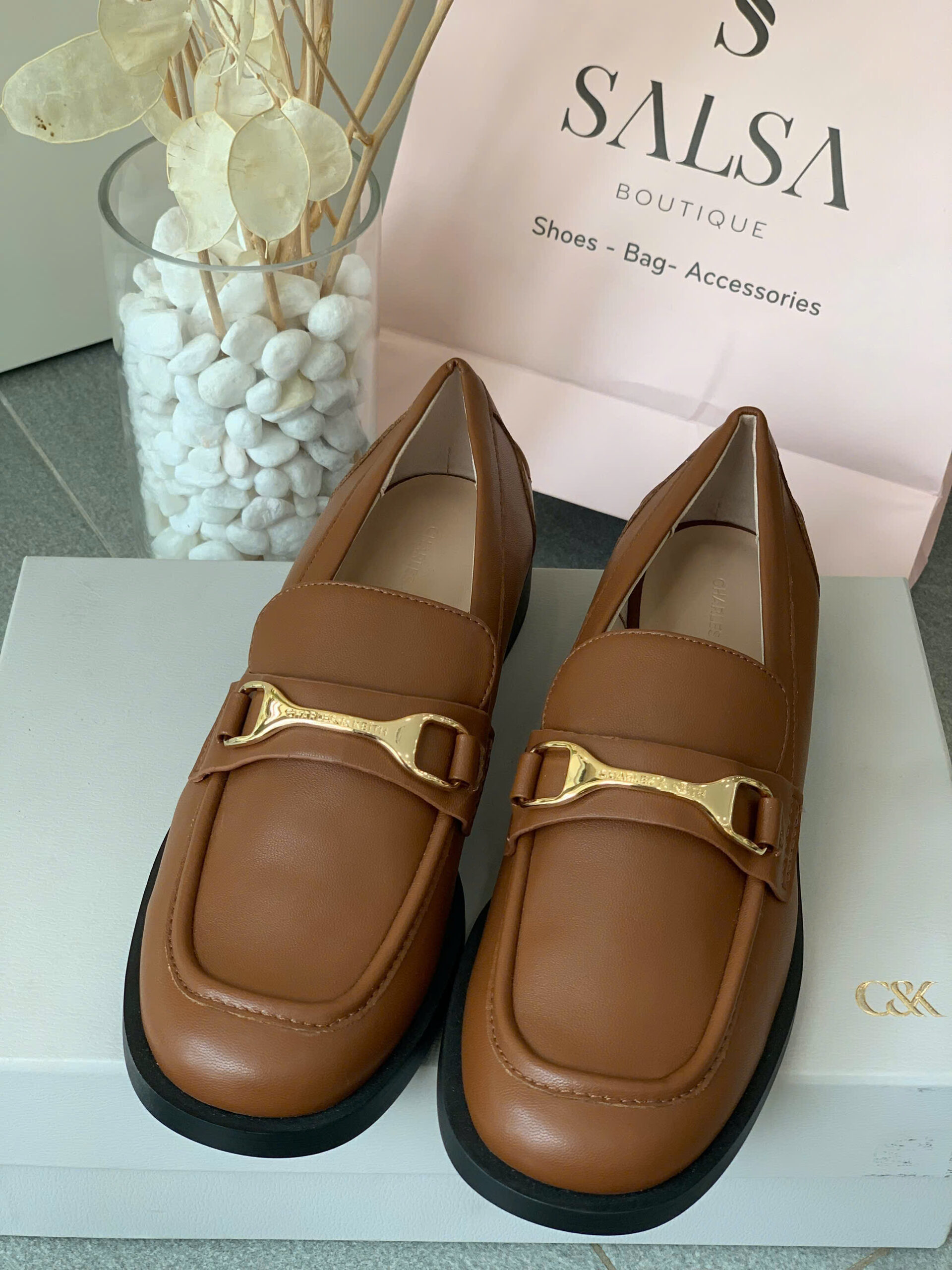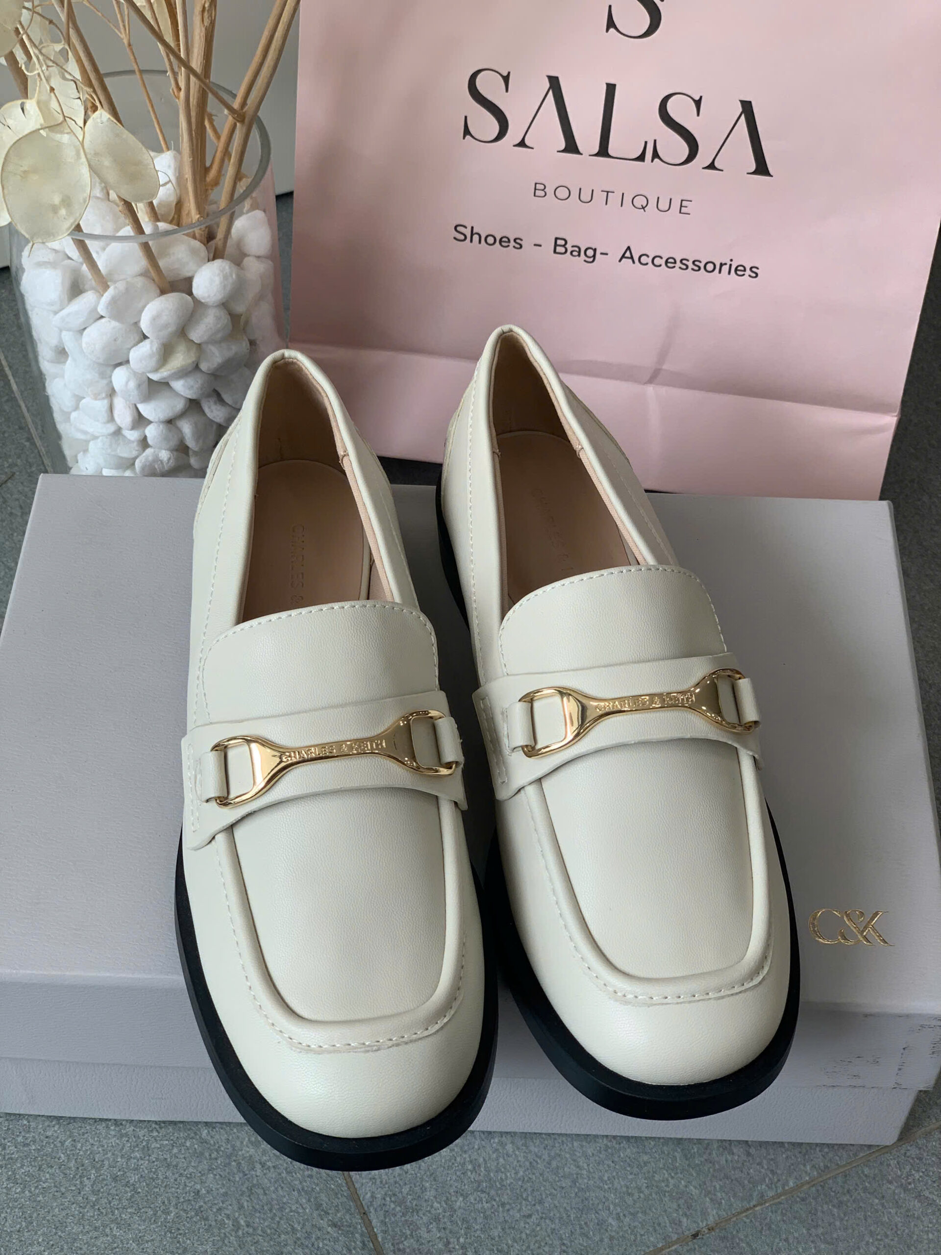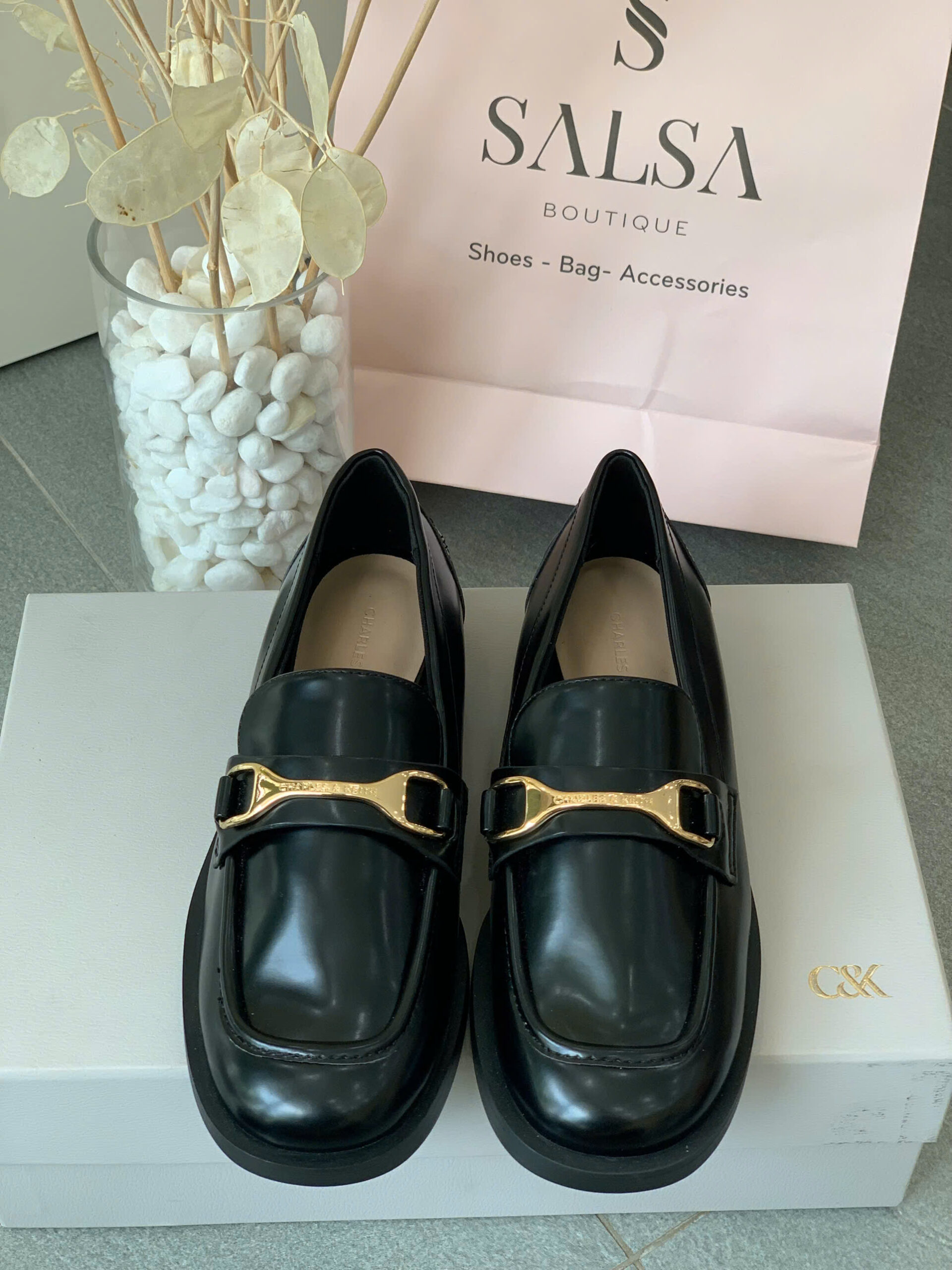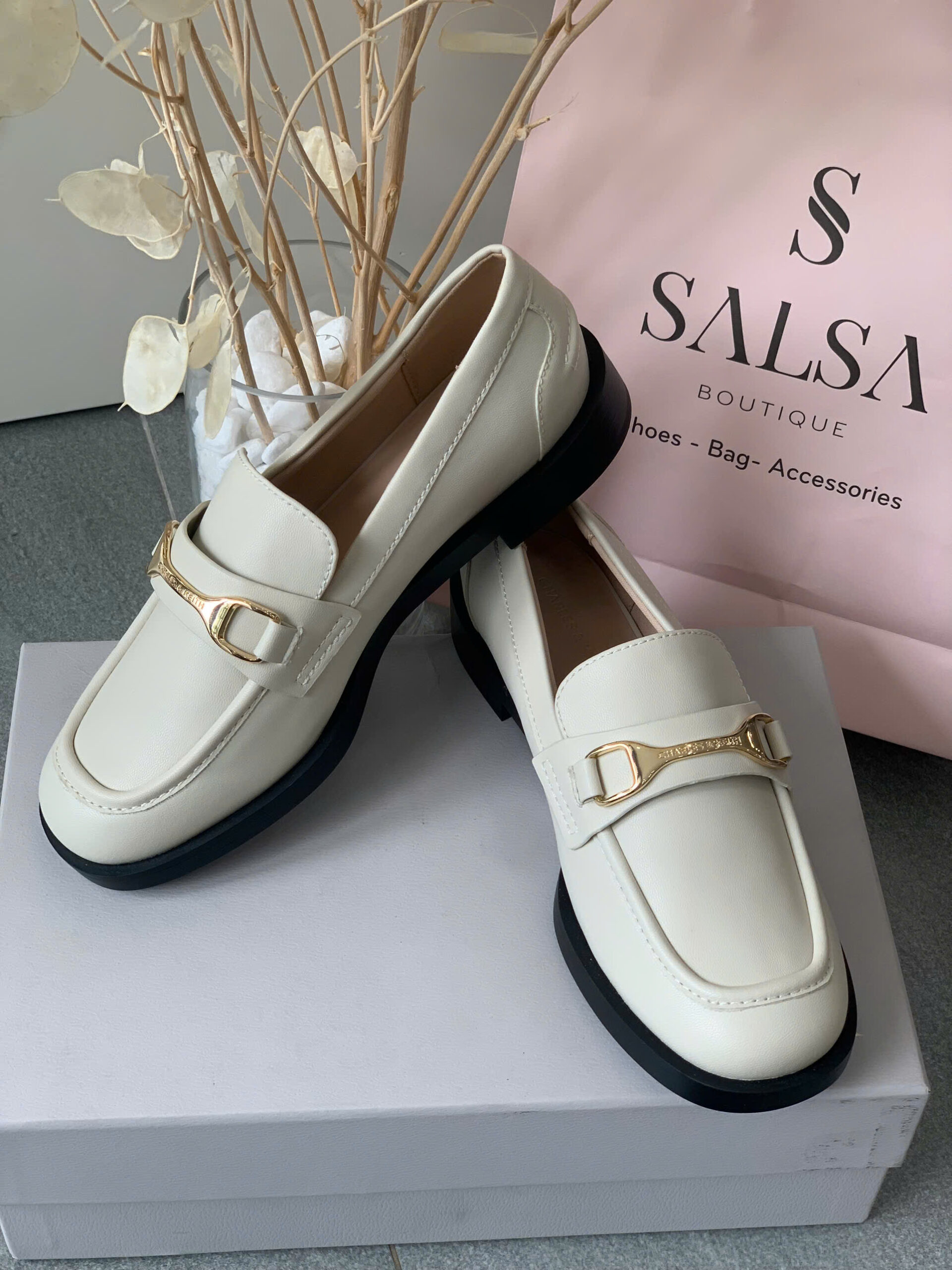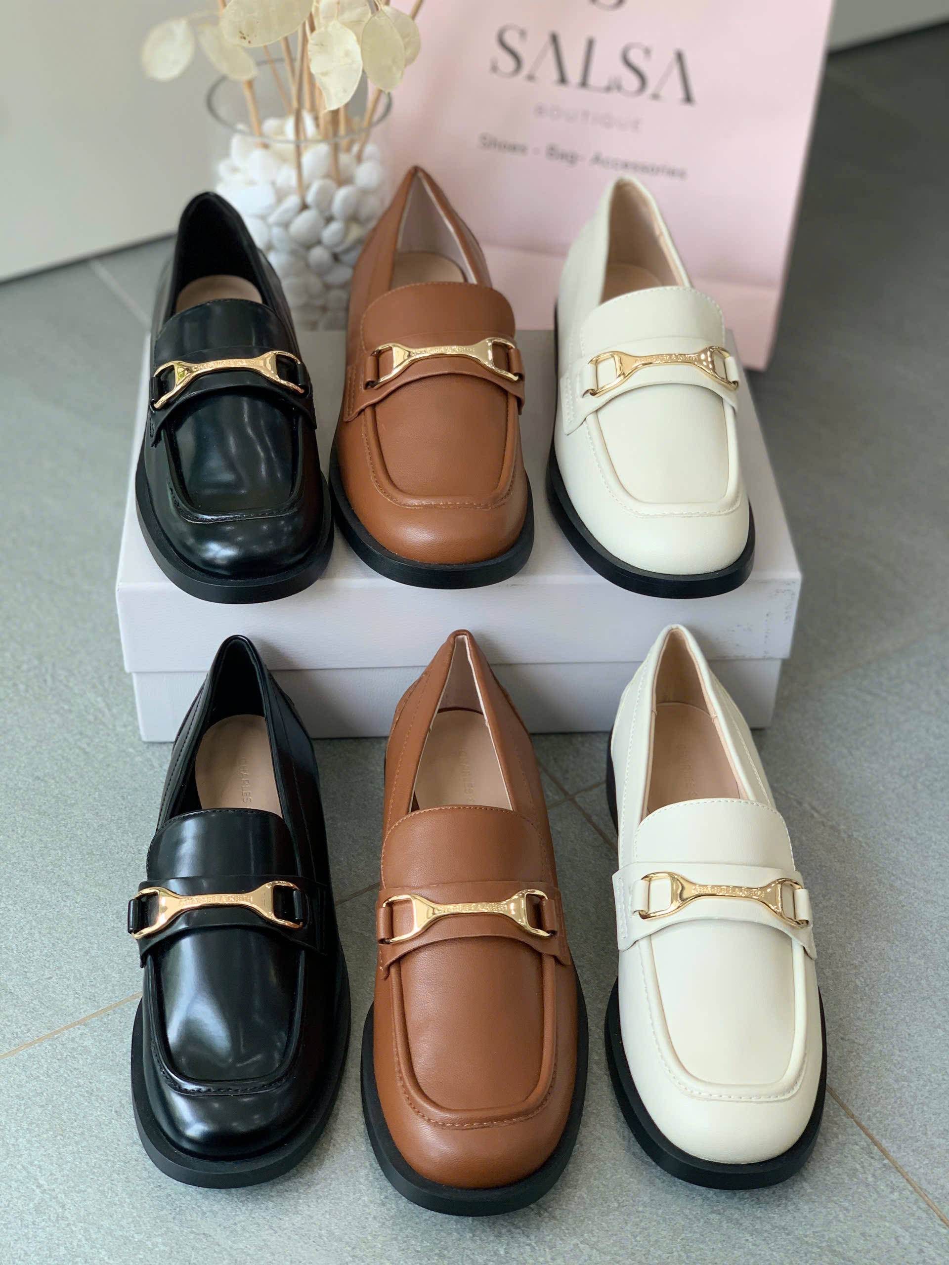 Thanh lịch chuẩn phong cách Âu với loafer mũi tròn. Điểm nhấn khoá kim loại sang trọng, dễ phối đồ từ công sở đến dạo phố. Đế bệt êm ái, nhẹ nhàng cả ngày dài.