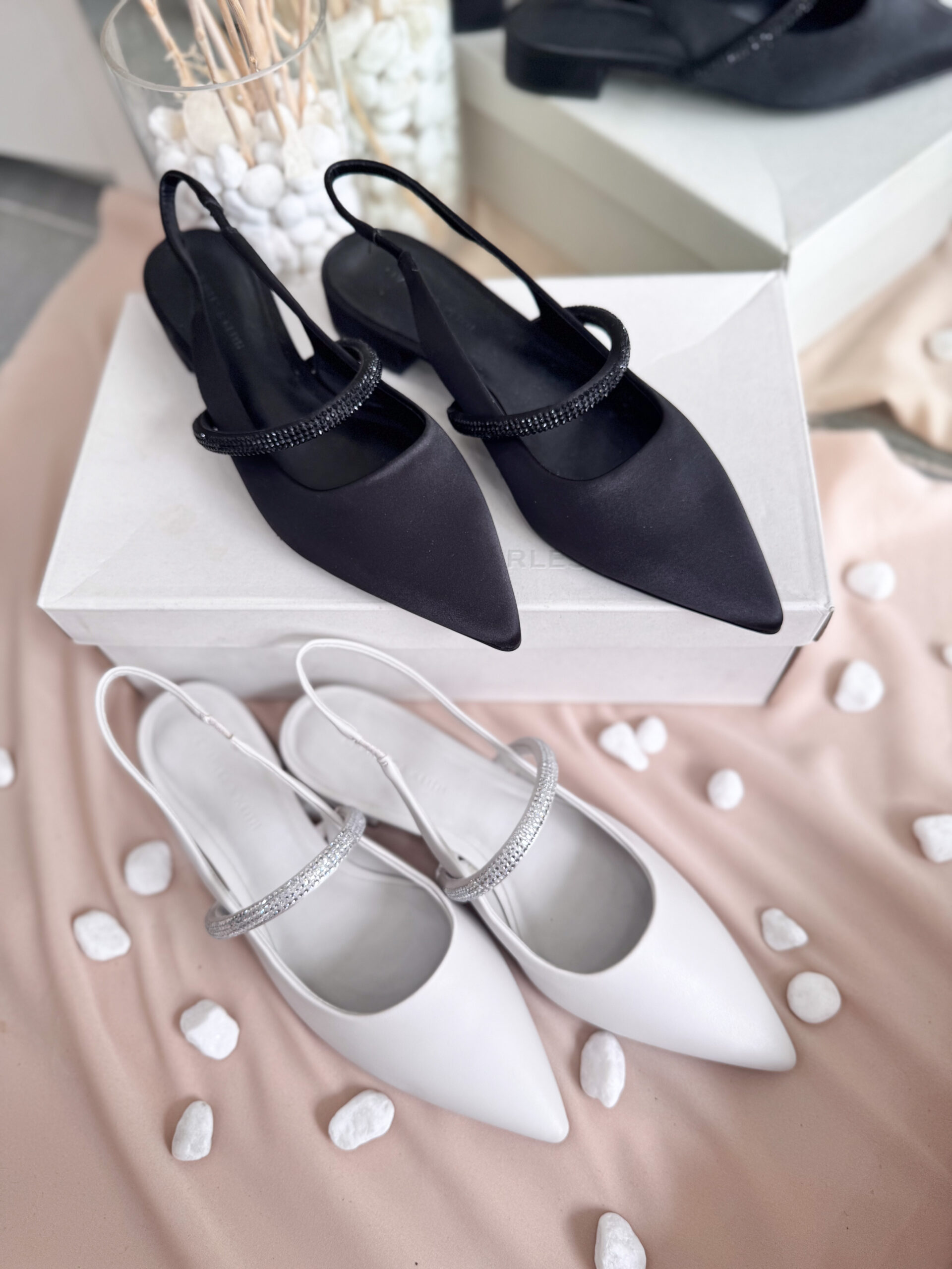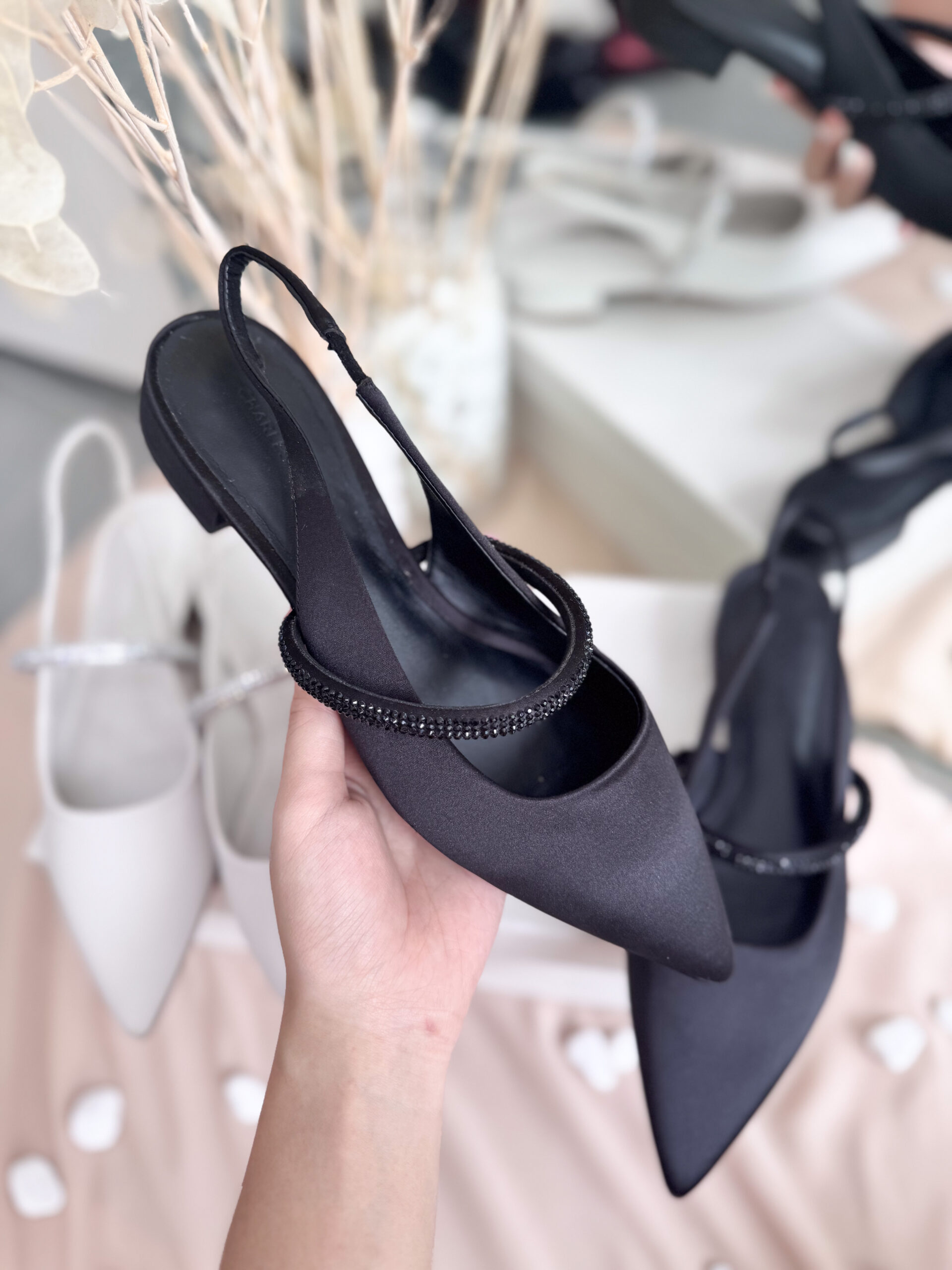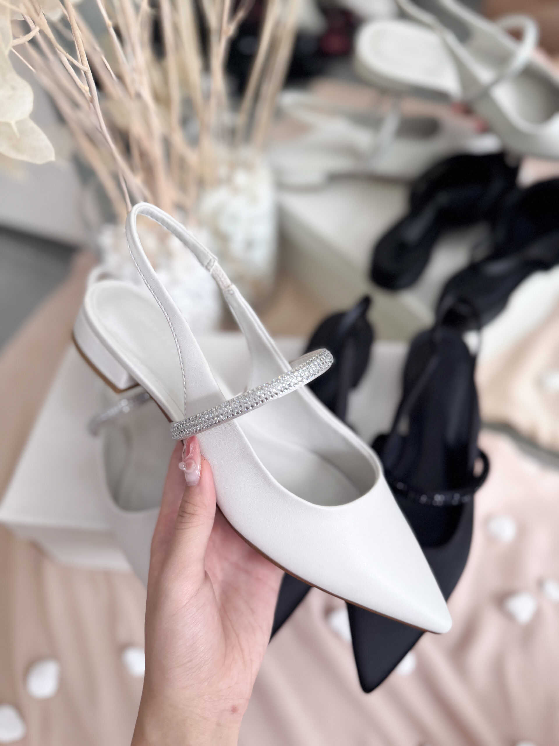 Slingback mũi nhọn thanh lịch kết hợp quai ngang đính đá lấp lánh cực sang, êm ái, đi cả ngày vẫn thoải mái, không đau chân. – Kiểu dáng: Slingback – Chất liệu: Da PU cao cấp, mềm mịn, dễ vệ sinh – Chiều cao: 1cm