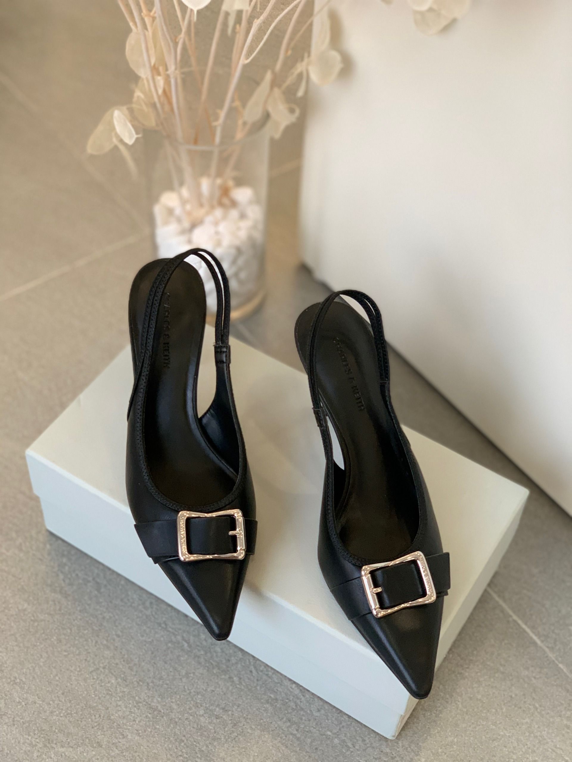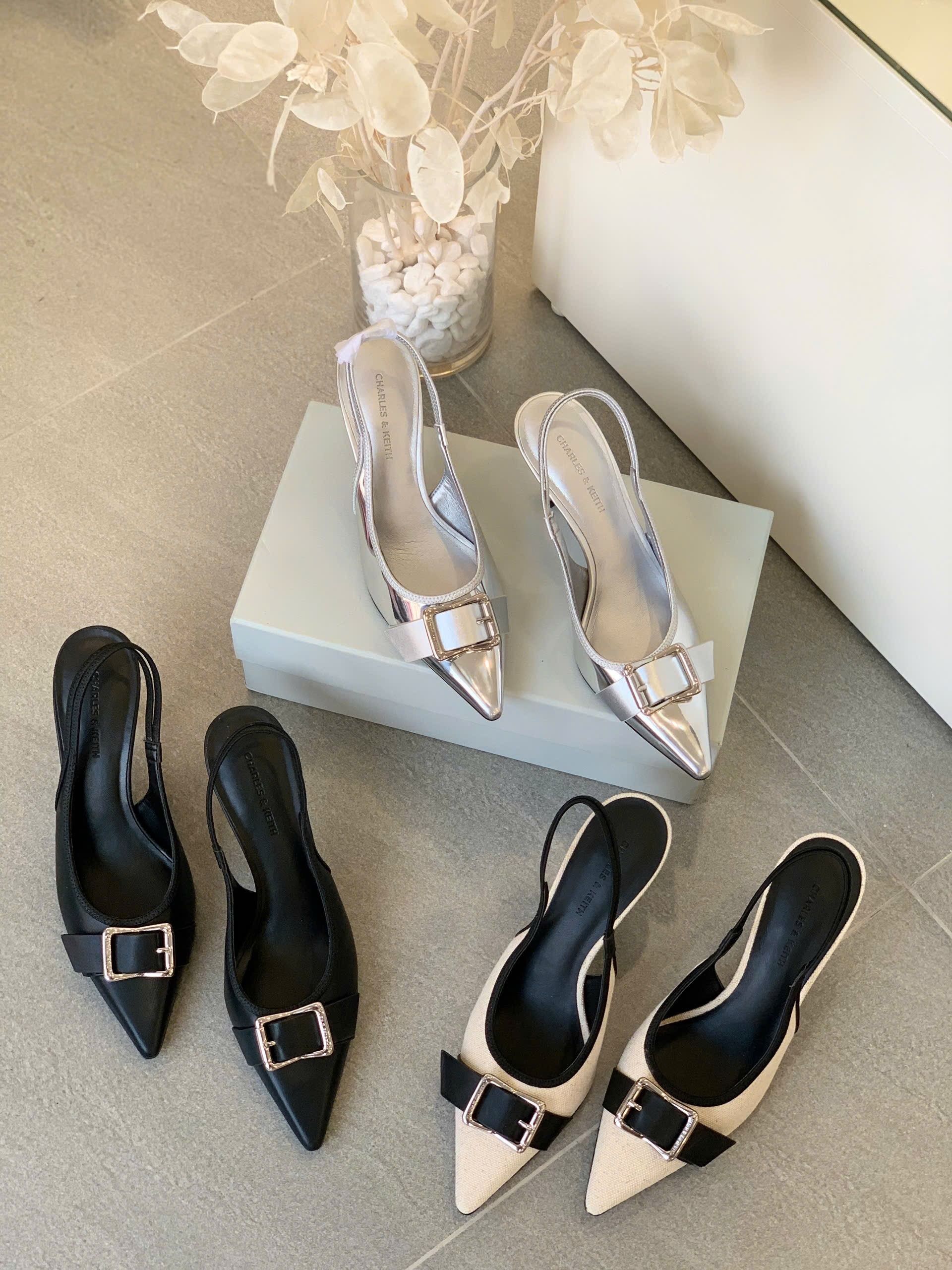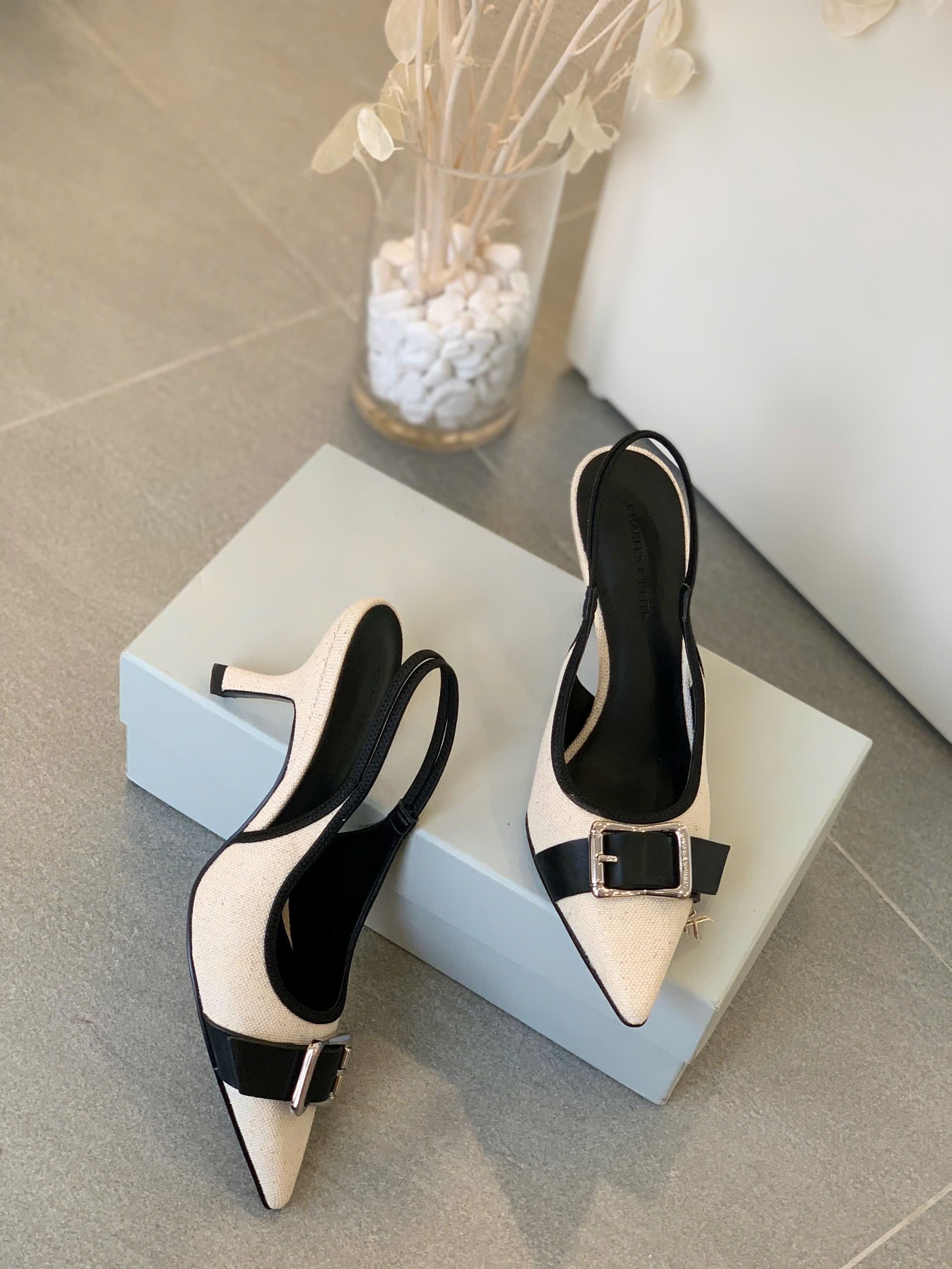 Mẫu giày slingback CNK được thiết kế thanh lịch với phần mũi nhọn hiện đại, tôn lên nét duyên dáng và phong cách thời thượng cho đôi chân. – Kiểu dáng: Giày slingback – Chất liệu: Bên ngoài PU / vải, lót PU, đế PU – Chiều cao: 5cm