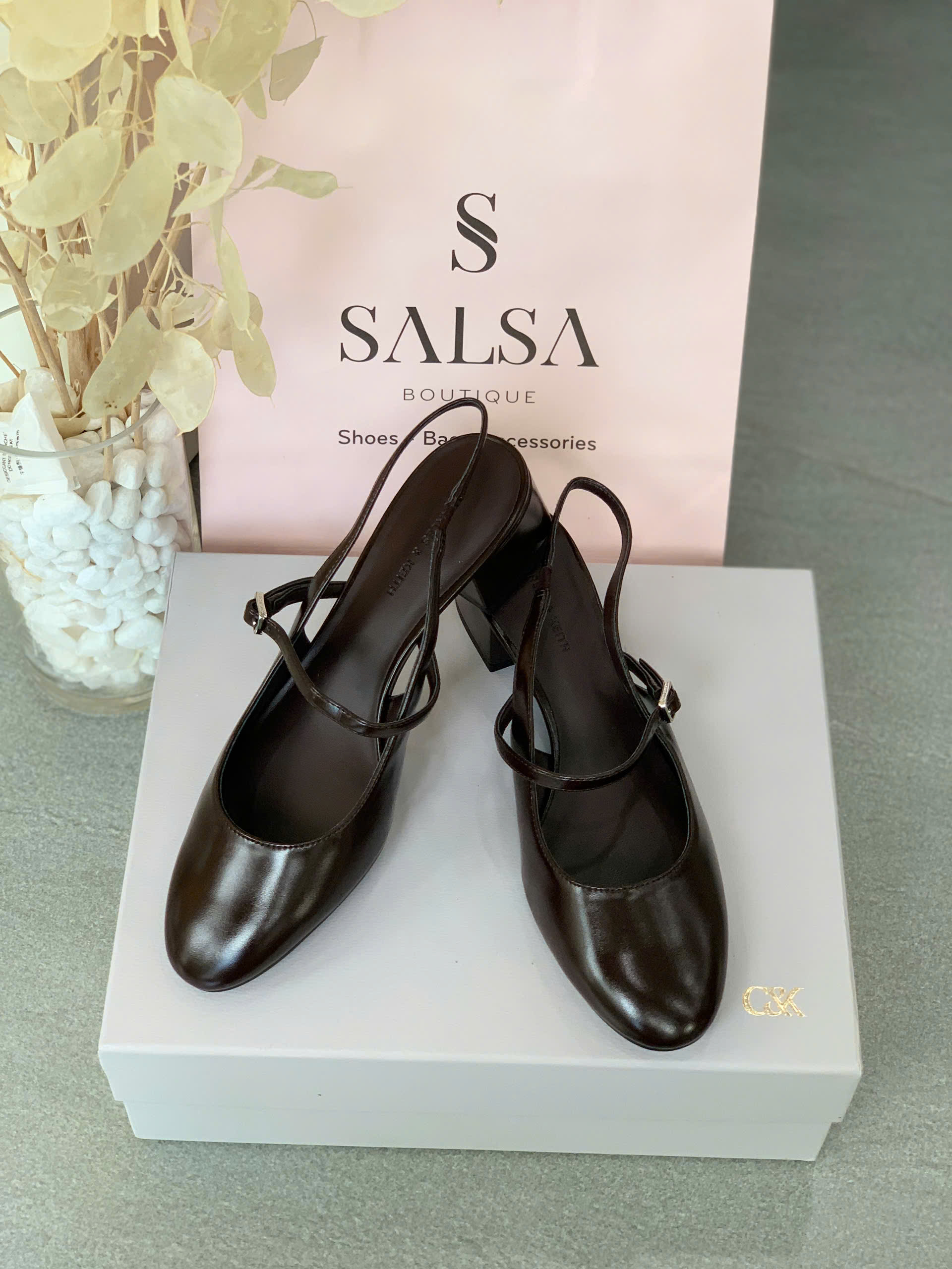 Giày có mũi hơi tròn, gót thấp giúp dễ đi lại. Quai mảnh có khóa kim loại nhỏ để điều chỉnh. Giày có vẻ ngoài thanh lịch, đơn giản, phù hợp với nhiều dịp từ đi làm đến đi chơi. – Kiểu dáng: Giày slingback – Chất liệu: PU – Chiều cao: 5cm