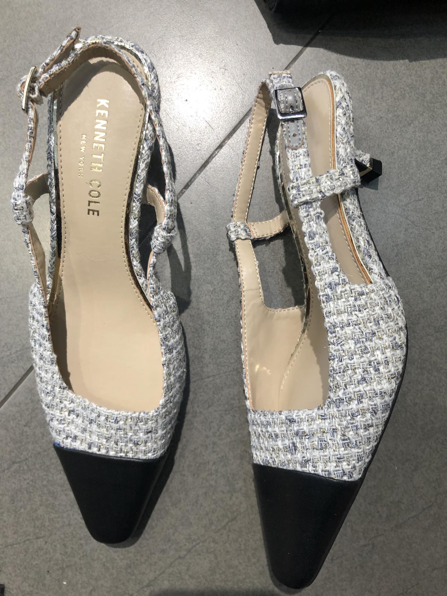 Với thiết kế đẹp mắt, được làm từ chất liệu vải tweed với màu sắc nhẹ nhàng. Giày có phần mũi nhọn, mang lại vẻ đẹp sang trọng và thanh thoát. Điểm đặc biệt của đôi giày này là chi tiết quai hậu có khóa, giúp giữ chắc chân và tạo thêm sự điệu đà cho thiết kế.