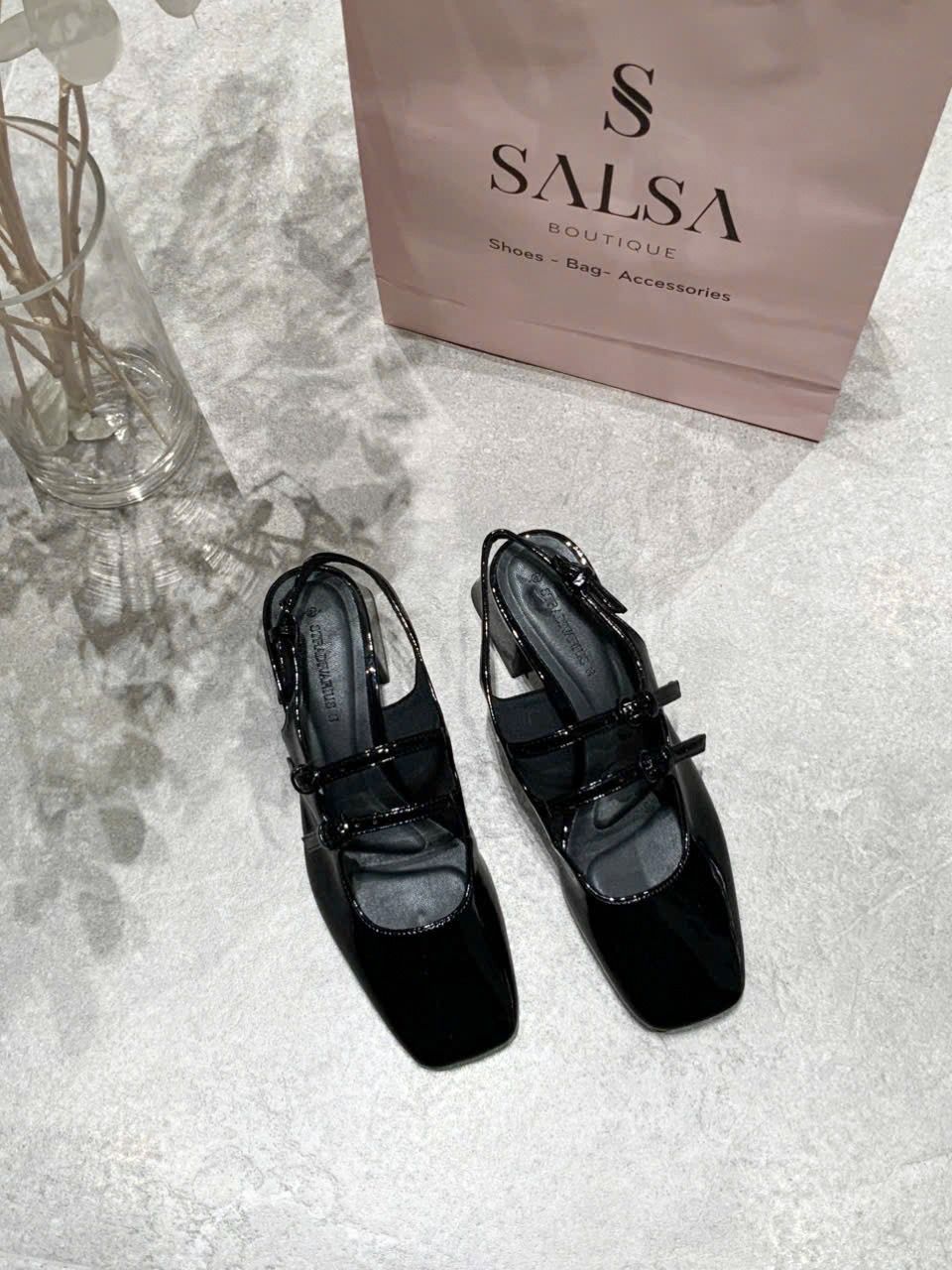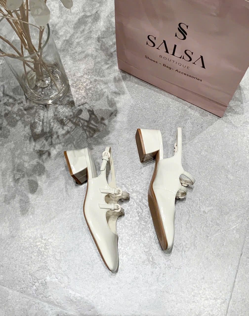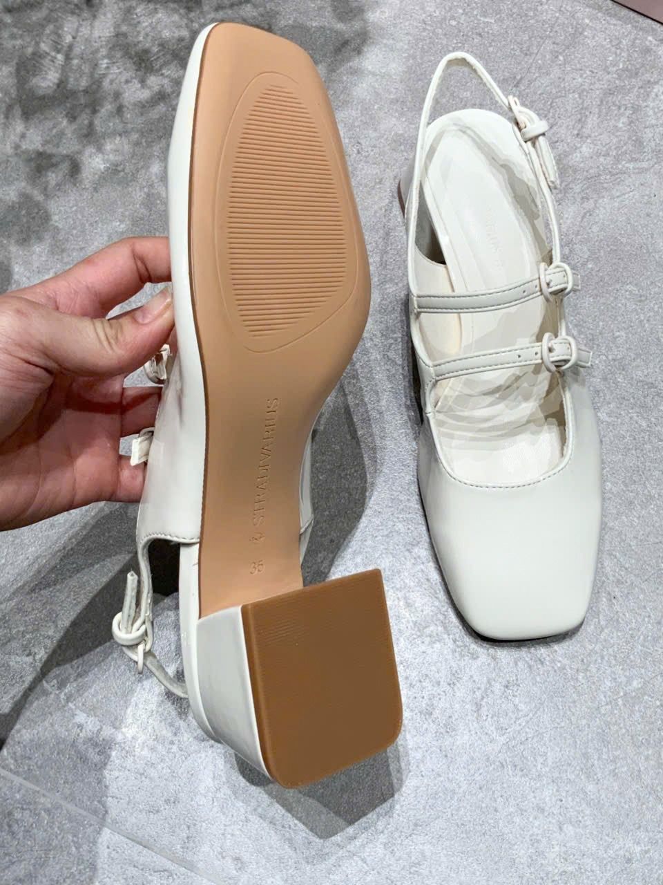 Quai mảnh thanh thoát ôm sát gót chân, kết hợp phần mũi vuông hiện đại tạo nét cá tính nhưng không kém phần thanh lịch. Thiết kế quai kép bản nhỏ tinh tế, giúp tôn dáng và mang lại sự thoải mái tối ưu khi di chuyển.