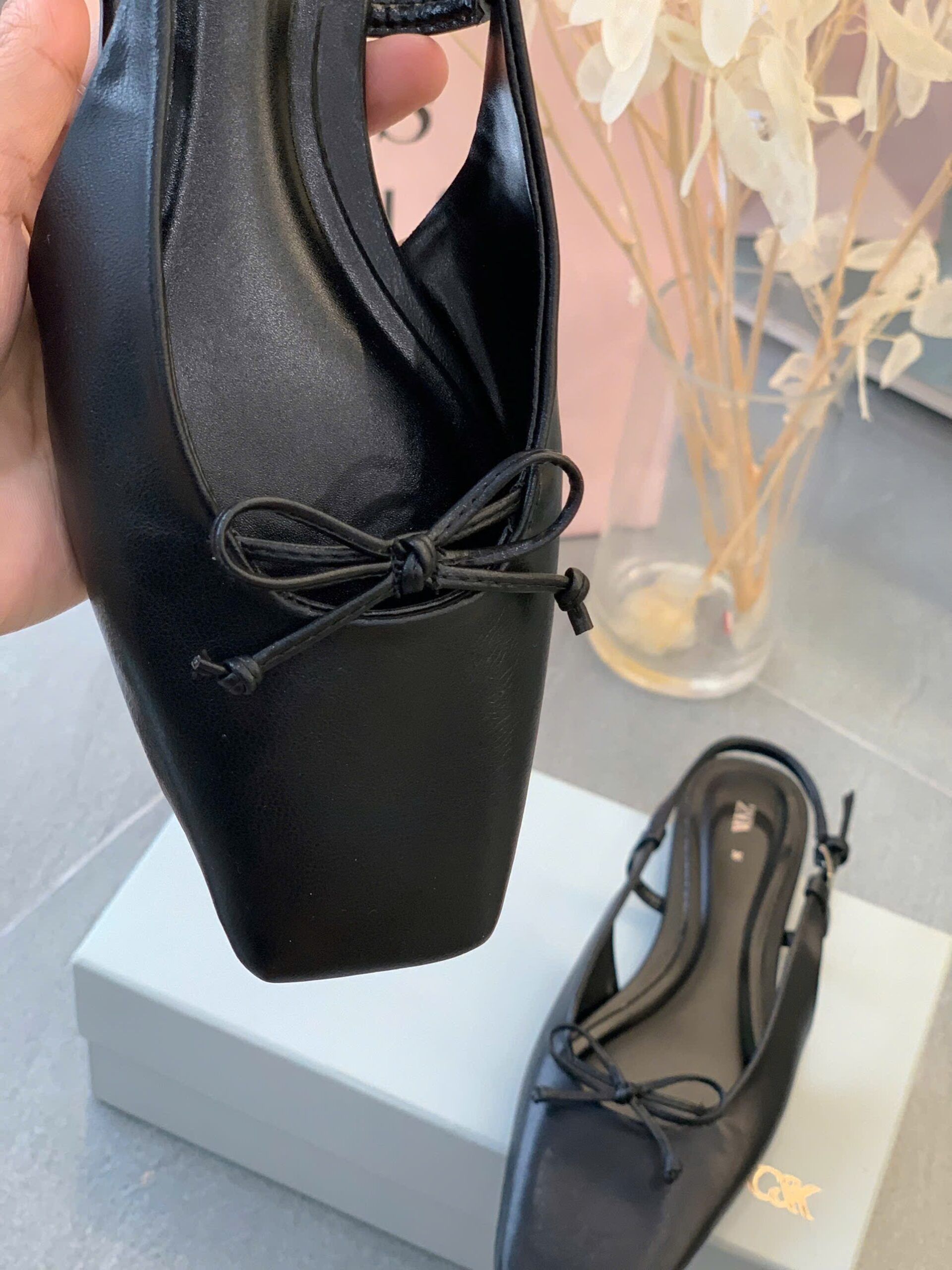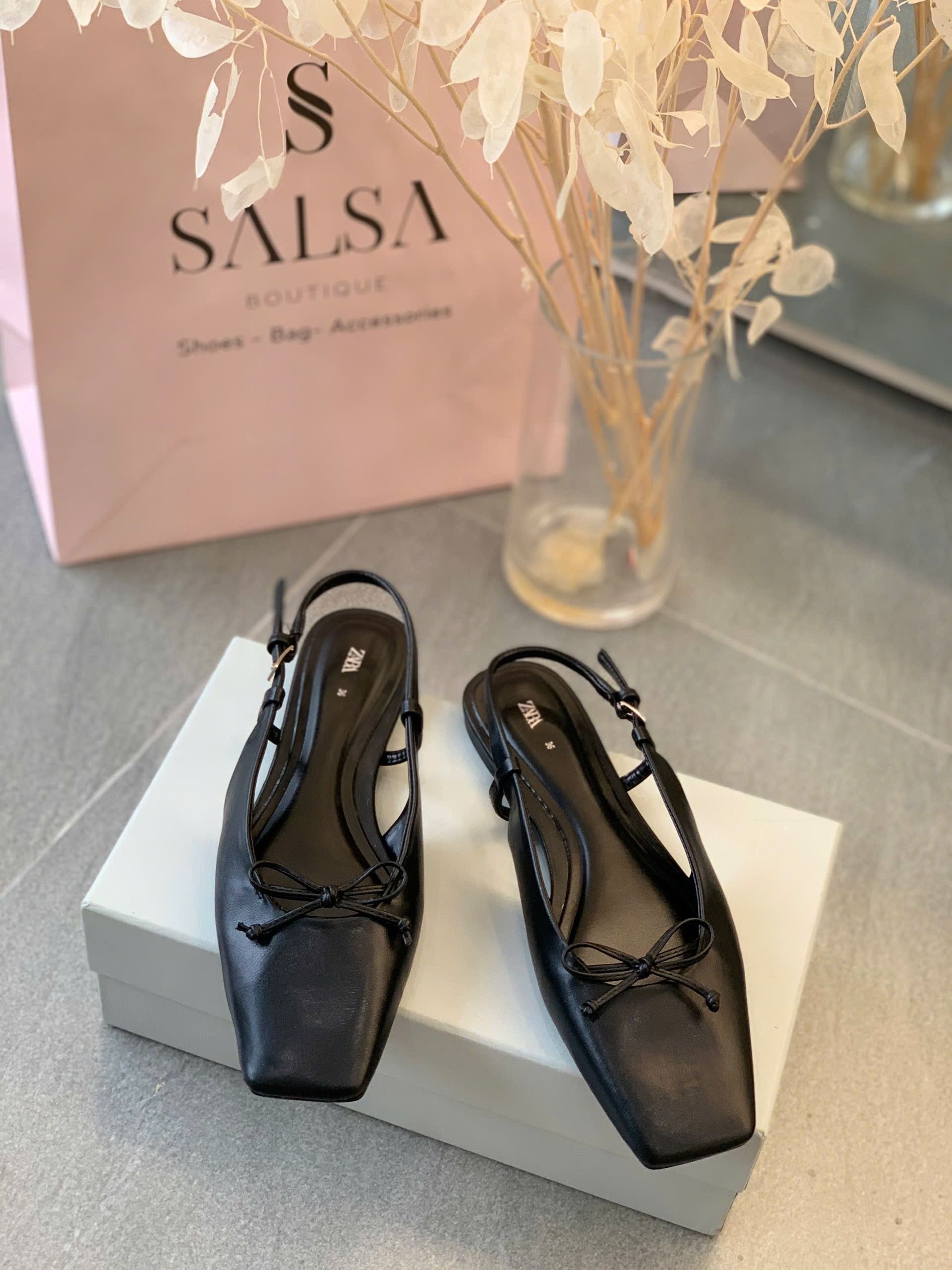 Giày slingback ZARA bệt mũi vuông đính nơ