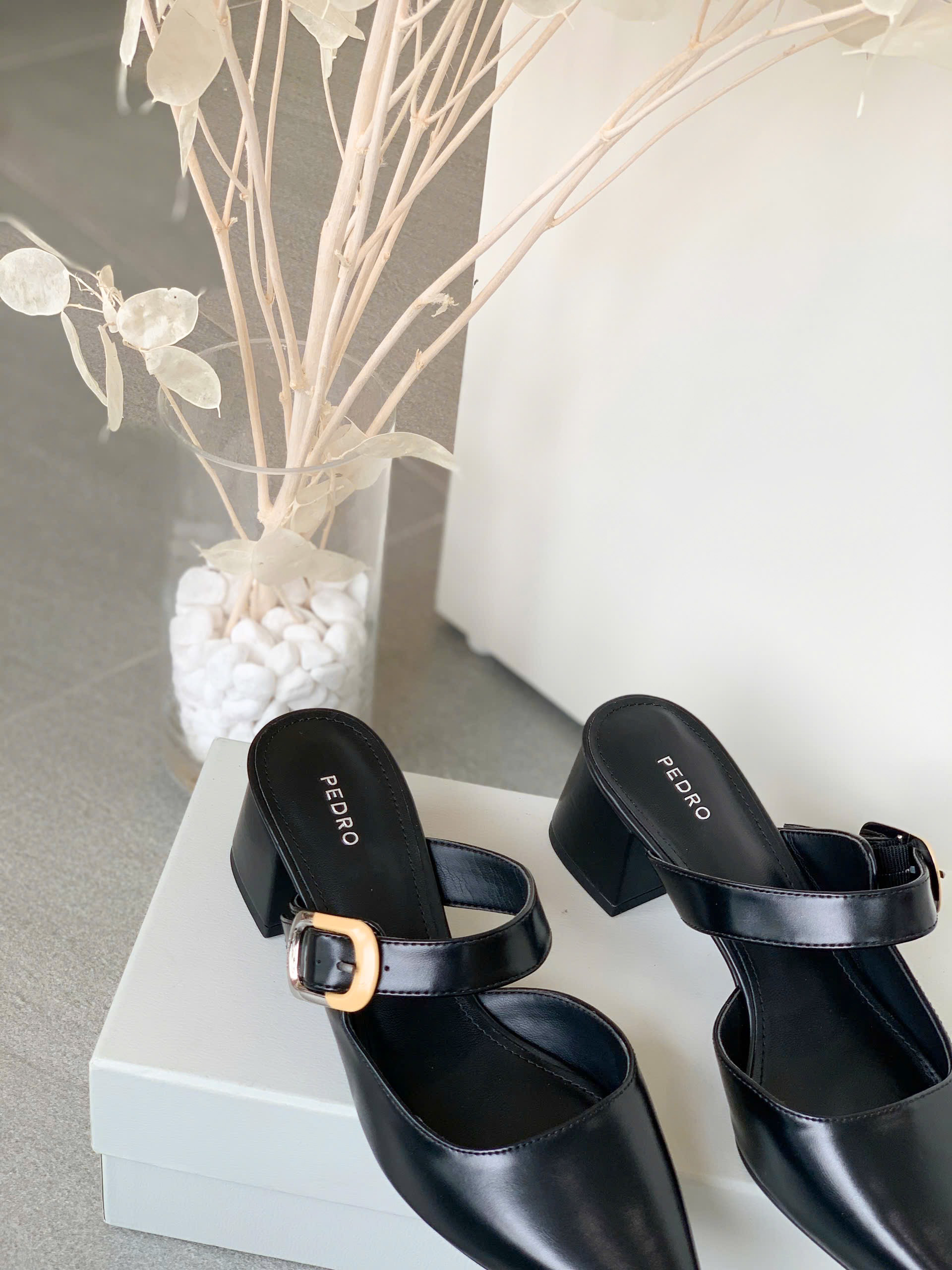 Gót vuông thanh lịch với quai ngang khóa kim loại sang trọng là điểm nhấn hoàn hảo cho phong cách thời trang tinh tế của bạn.