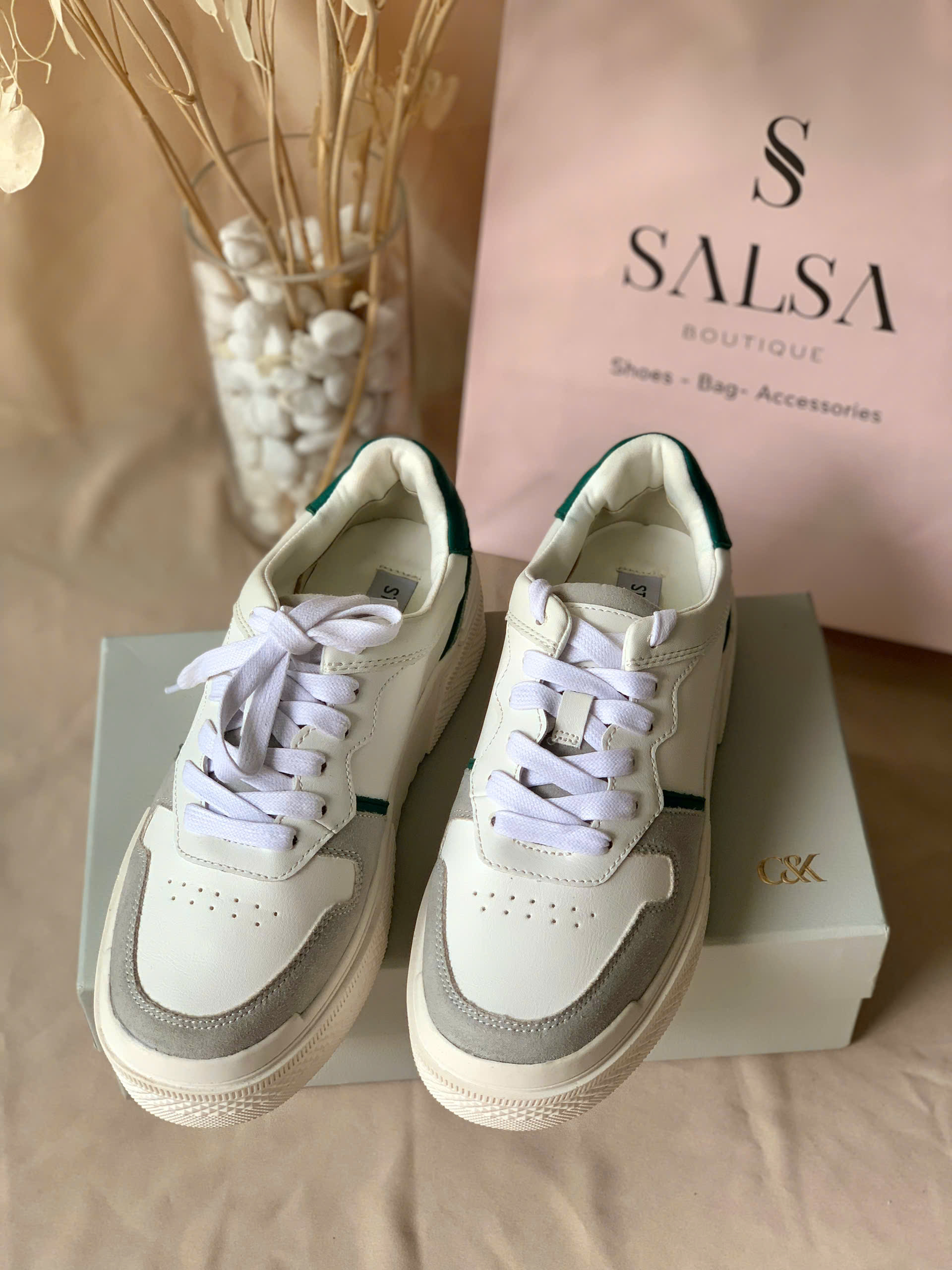 Giày thể thao sneaker thiết kế hiện đại với phối màu trắng xanh trẻ trung năng động. Đế giày cao su chắc chắn, tạo độ bám tốt và thoải mái khi di chuyển. Kiểu dáng thể thao phù hợp với nhiều phong cách thời trang, mang lại sự trẻ trung và năng động cho người sử dụng.