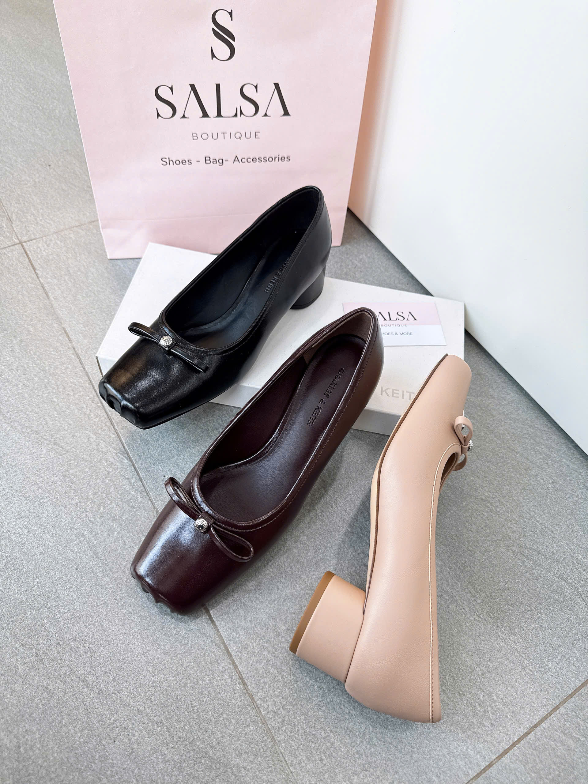 Giày búp bê mũi vuông tối giản, điểm nhấn nơ nhỏ đính charm ngọc tinh tế và nữ tính. Thiết kế thanh lịch kết hợp gót thấp bản vuông phối đinh kim loại tạo nét cá tính nhẹ nhàng. Form ôm chân gọn gàng, dễ mang và thoải mái khi di chuyển cả ngày. Phù …